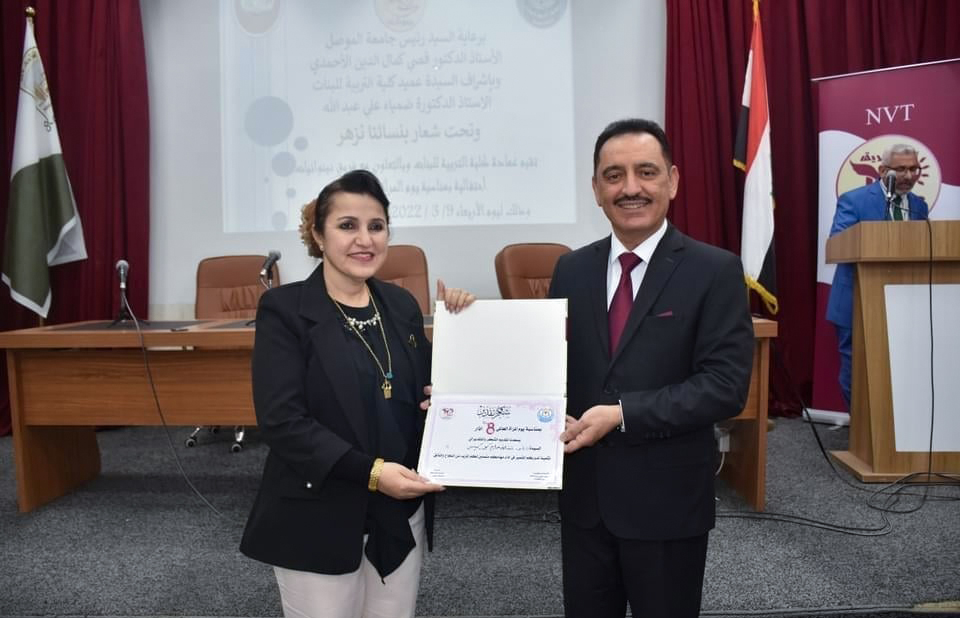 في الختام تم تقديم شهادات تقديرية لمجموعة من النساء تثميناً لدورهم في الارتقاء بالواقع النسوي في نينوى ودعمهم للعملية التعليمية في جامعة الموصل