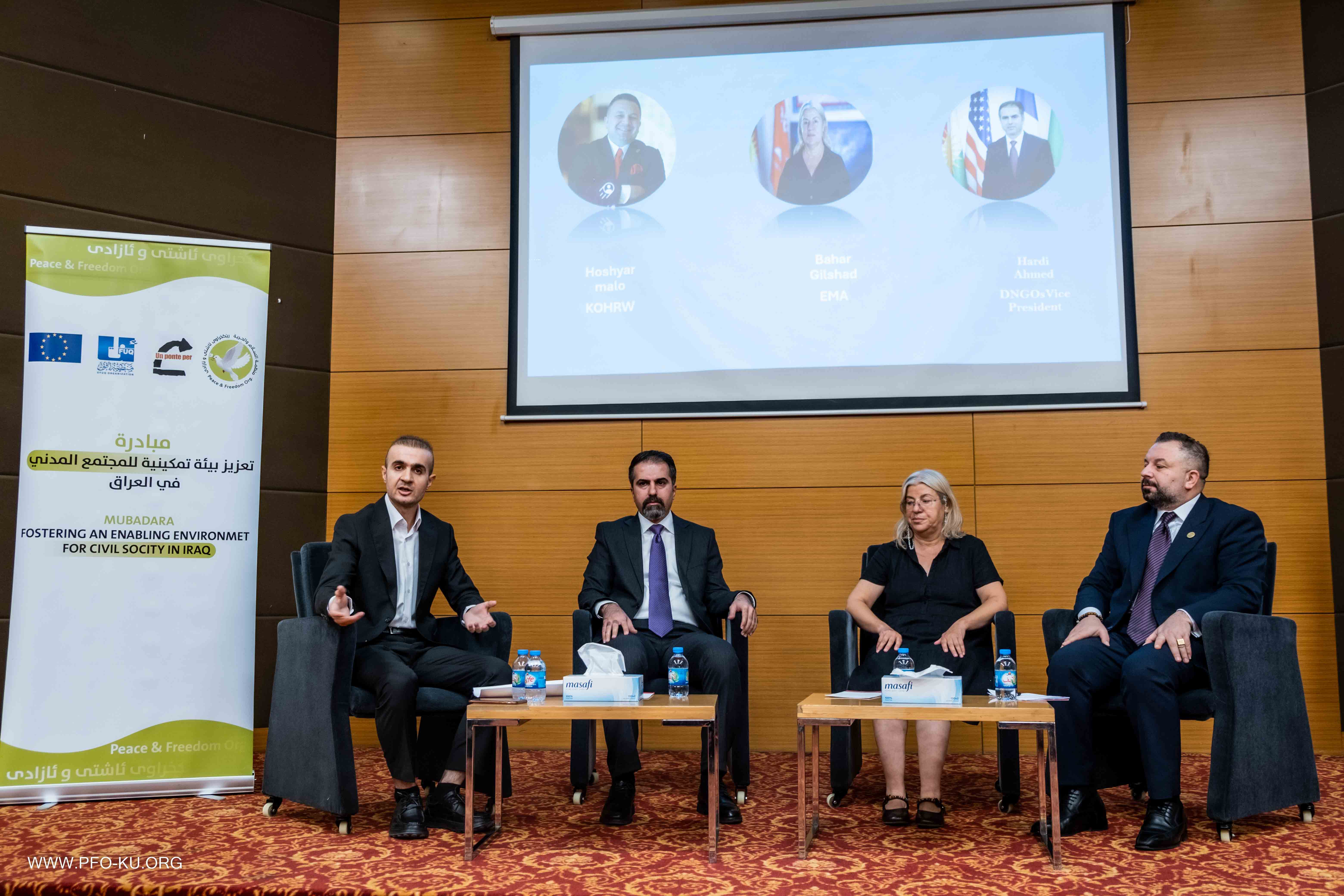 وفي اللقاء نفسه، نُظمت حلقة نقاشية ضمت كلاً من هردي أحمد، نائب رئيس مكتب المنظمات غير الحكومية، وبهار علي، رئيس منظمة إيما، وهوشيار مالو، رئيس منظمة كردستان لمراقبة حقوق الإنسان.