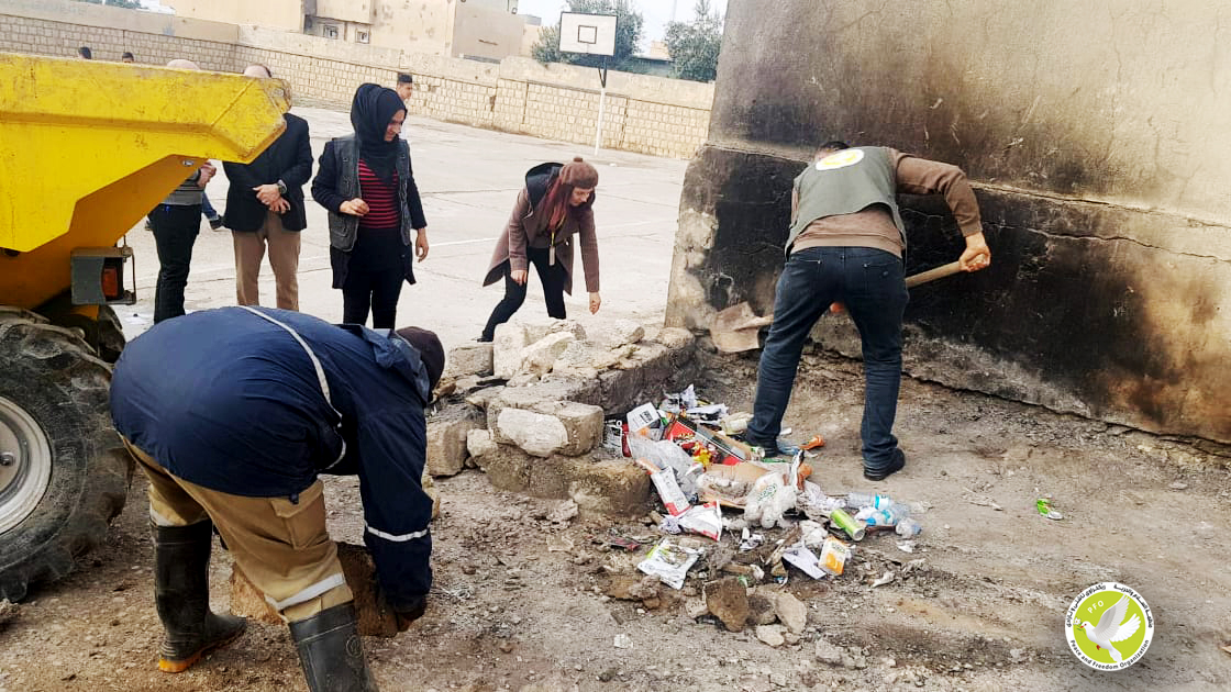 تم رفع المحرقة وإعادة تأهيل الموقع من التنظيف والصبغ والرسم لتعزيز أواصر التعايش السلمي بين الطلبة، وترميم المسرح الحالي وسط الساحة وتوفير حاويات للنفايات مع تجهيز المدرسة بسماعة كبيرة للمناسبات.