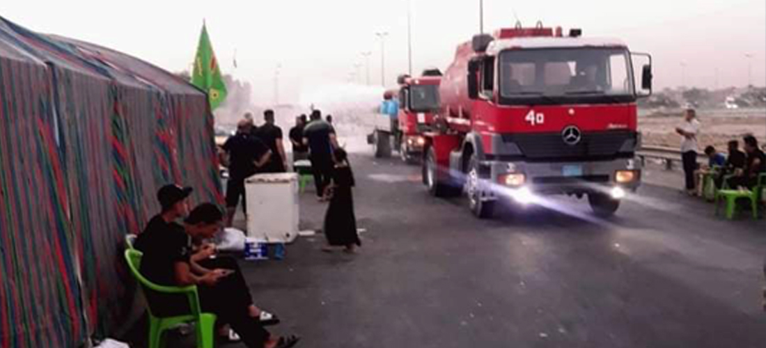 حيث باشرت الحملة بتاريخ ٦ تشرين اول الجاري كوادر رتل طوارىء مديرية الدفاع المدني العامة في بغداد قاطع الرصافة بإستخدام مدفع التضبيب المجهز من قبل منظمة السلام والحرية pfo وبالتنسيق مع فريق المنظمة سيرجيو دي ميلو للاستجابة السريعةSIRT حملة تطهير عام لمسار الزيارة الاربعينية والممتد من سيطرة الشعب شمال بغداد ومرورا بالخط السريع الاول محمد القاسم و منه الى خط سريع الدورة جنوب بغداد وصولا الى تقاطع حي السيدية حيق بلغت المسافة الاجمالية مايقارب ال٣٥كم.