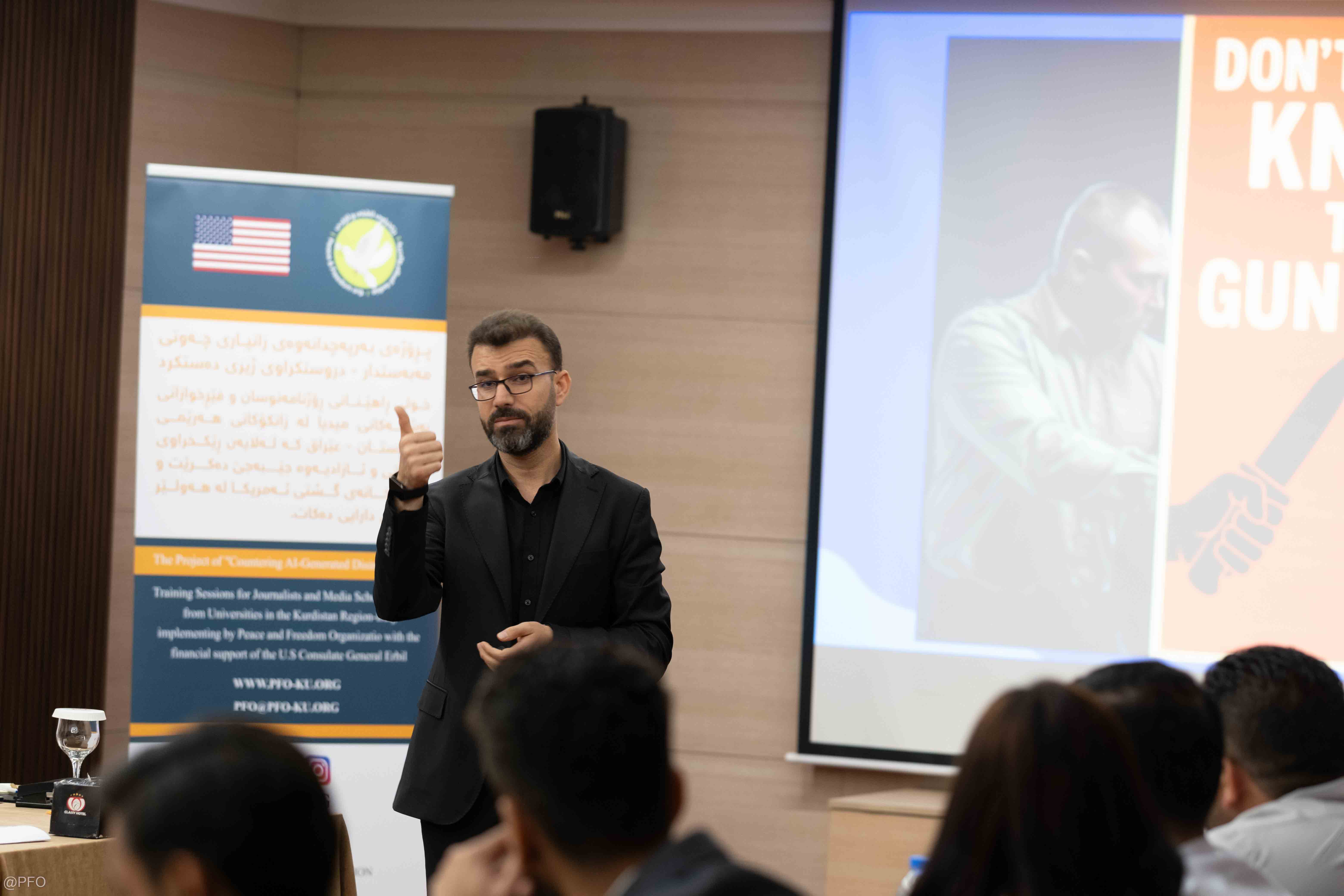 From May 22-24, 2025, Peace and Freedom Organization-PFO, with financial support from the U.S. Consulate General in Erbil, organized the 4th three-days training session in Erbil for 25 journalists and media school university students from the Kurdistan Region and Kirkuk Governorate.