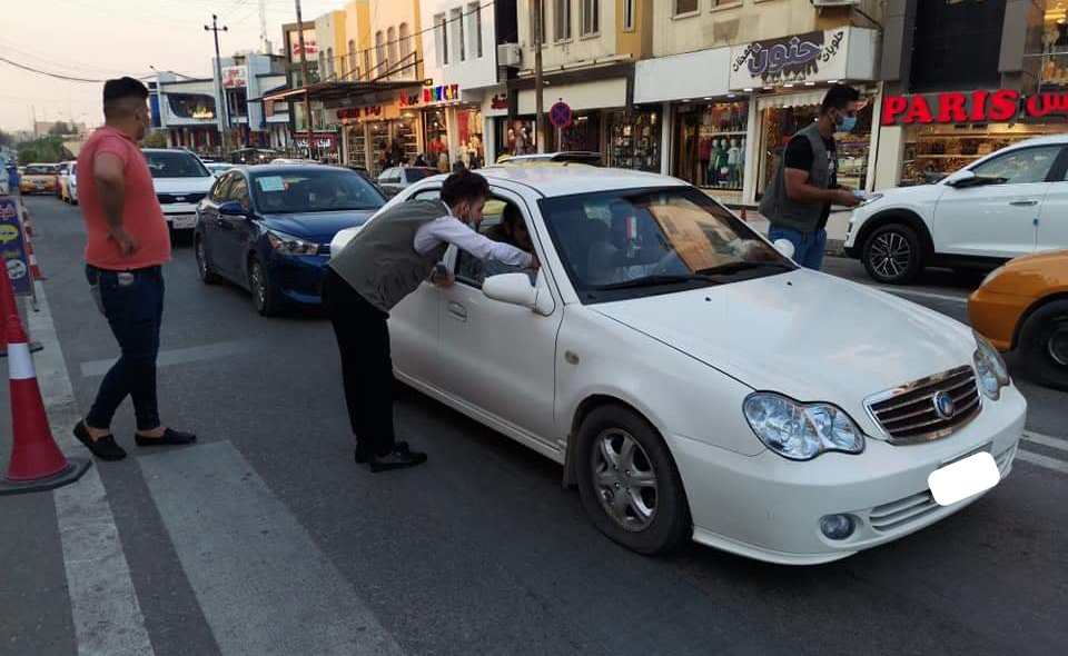 Containing under I want peace I want_equality, today 6th Sep we were in Nineveh, Mosul street where the Mosul team distributed 100 perfumes on car. As well talking with the car's owner about the important of coexistence.