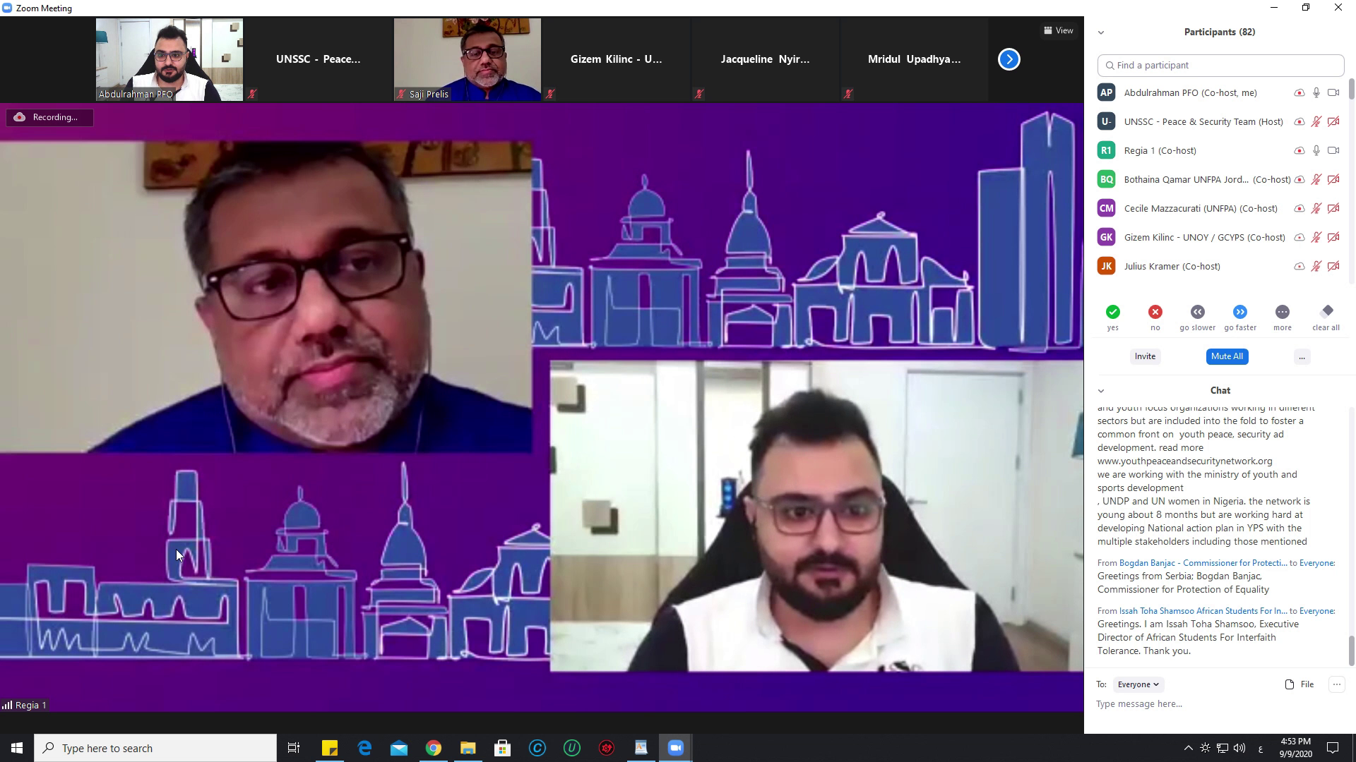 At the Middle East level, the two experiences from Jordan and Iraq were presented. The forum attended by a large number of representatives of UN agencies, international organizations and officials from the Global Coalition for Youth, Peace and Security, PFO presented its effort since 2016 until now and what have been implemented so far to pave the way for YPS in Iraq after all it was met with great interest from the international community.
