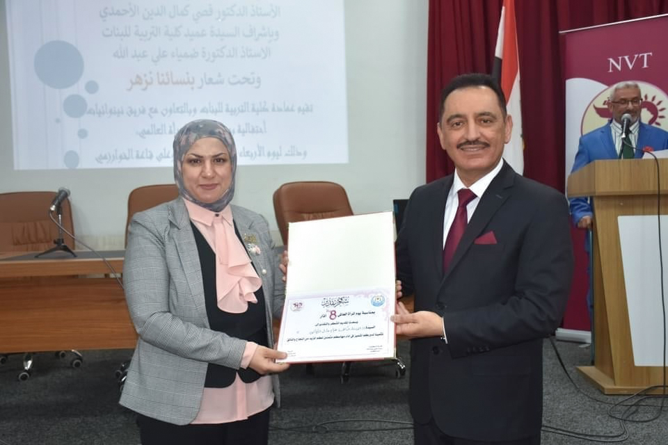 في الختام تم تقديم شهادات تقديرية لمجموعة من النساء تثميناً لدورهم في الارتقاء بالواقع النسوي في نينوى ودعمهم للعملية التعليمية في جامعة الموصل