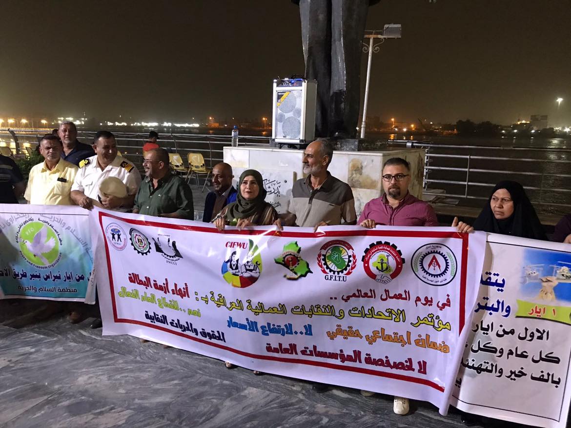 شاركت منظمة السلام والحرية في الوقفة التي نظمها مؤتمر الاتحادات والنقابات العمالية العراقية في البصره بمناسبة الاول من ايار يوم العمال العالمي والذي يعد يوما لتعبير العمال عن احتجاجهم ضد الظلم والاضطهاد الي يتعرض له العمال في عموم العالم وهذا وتعد منظمة السلام والحرية من المنظمات التي عملت ولازالت تعمل مع العمال ونقاباتهم من أجل الحقوق والحريات النقابية.