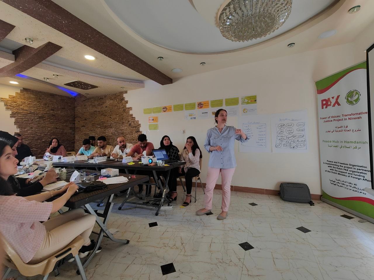 , نفذت منظمة السلام والحرية بالتعاون مع مراكزها للسلام في بعشيقة وحمدانية وتلكيف تدريبا شاملا لمدة أربع أيام عن الجندر والعدالة التحويلية اللذي تم تقديمه للفرق التطوعية الشريكة في الموصل وسهل نينوى. حيث قامت مسؤولة الجندر في السلام والحرية "ريم غسان" وتناولت الورشة العديد من المواضيع منها مفهوم الجندر والمعايير والانماط الجندرية و التحليل الجندري في نينوى واهداف مشروع الرئيسية واهم الفئات المستهدفة .