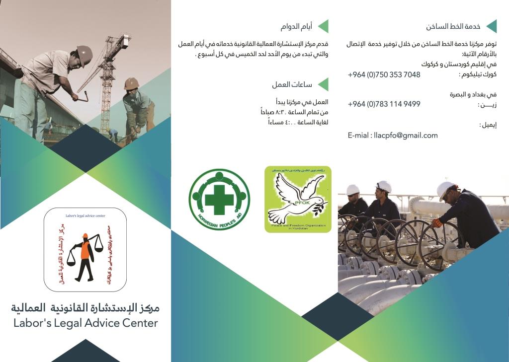 مركز قانوني متخصص بتقديم الخدمات القانونية للعمال مجاناَ وخاصة العمال الذين يتم خرق حقوقهم من خلال إنهاء عقدهم تعسفاَ و الذين يتعرضون لإصابات أثناء العمل التي تؤدي في أغلب الأحيان إلى الموت أو العاهات المستدامة