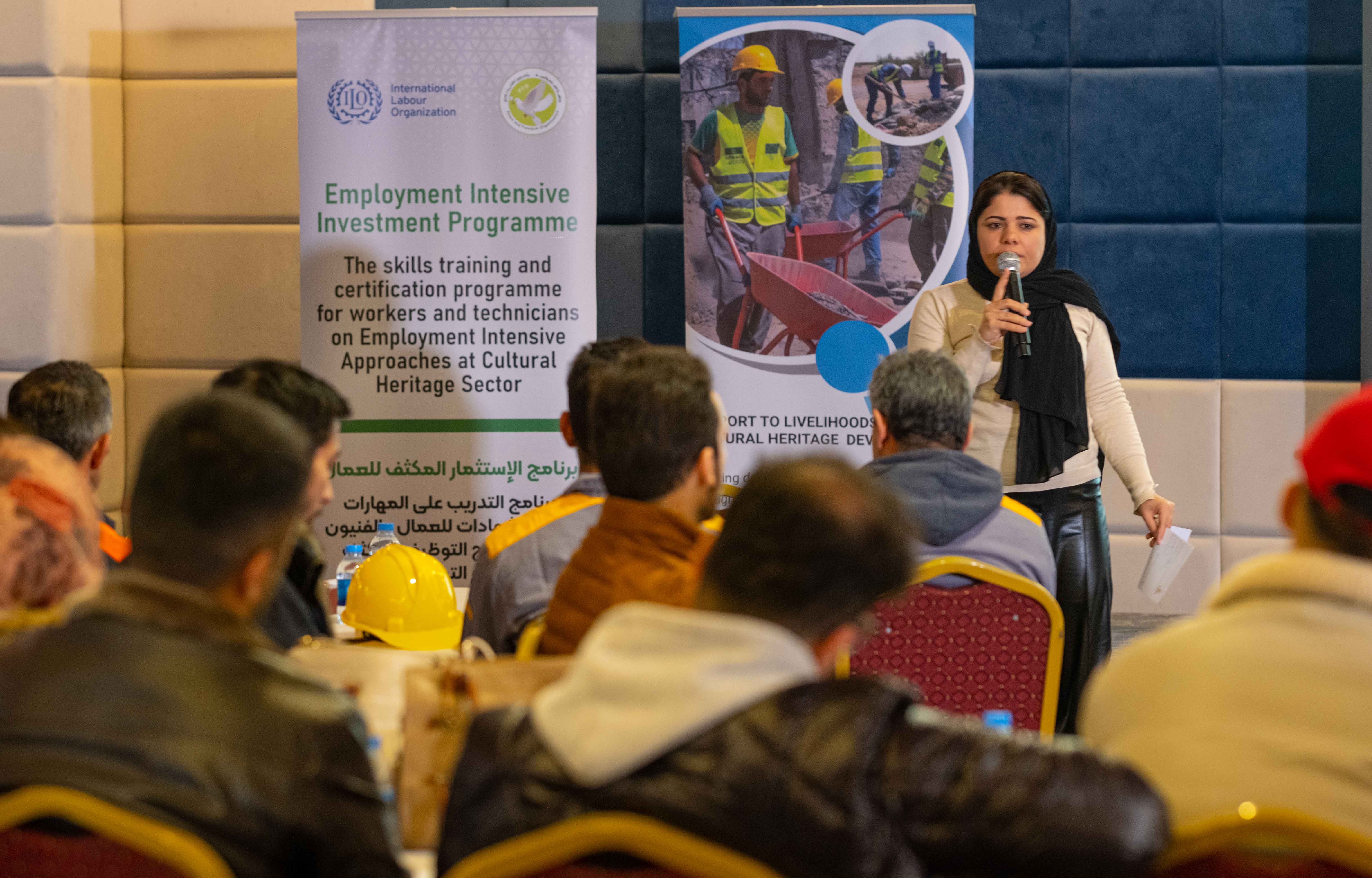 برنامج الاستثمار المكثف للعمالة يتركز على ثلاث مهارات خاصة بالإرث الثقافي لتمكين قدرات العمال والفنييون في قلعة اربيل, تدريب على مهارة الارشاد السياحي والتدريب على مهارة الرصف الحجري ودورة البناء. حيث ركزت التدريب في يومه الاول على مجموعة من التعليمات اساسية للبرنامج من الصحة والسلامة للعامل وايضا ما مدى اهمية الاحتفاظ بالمناطق الاثرية من ترميمها وإعادة اعمارها بالشكل التراثي القديم.