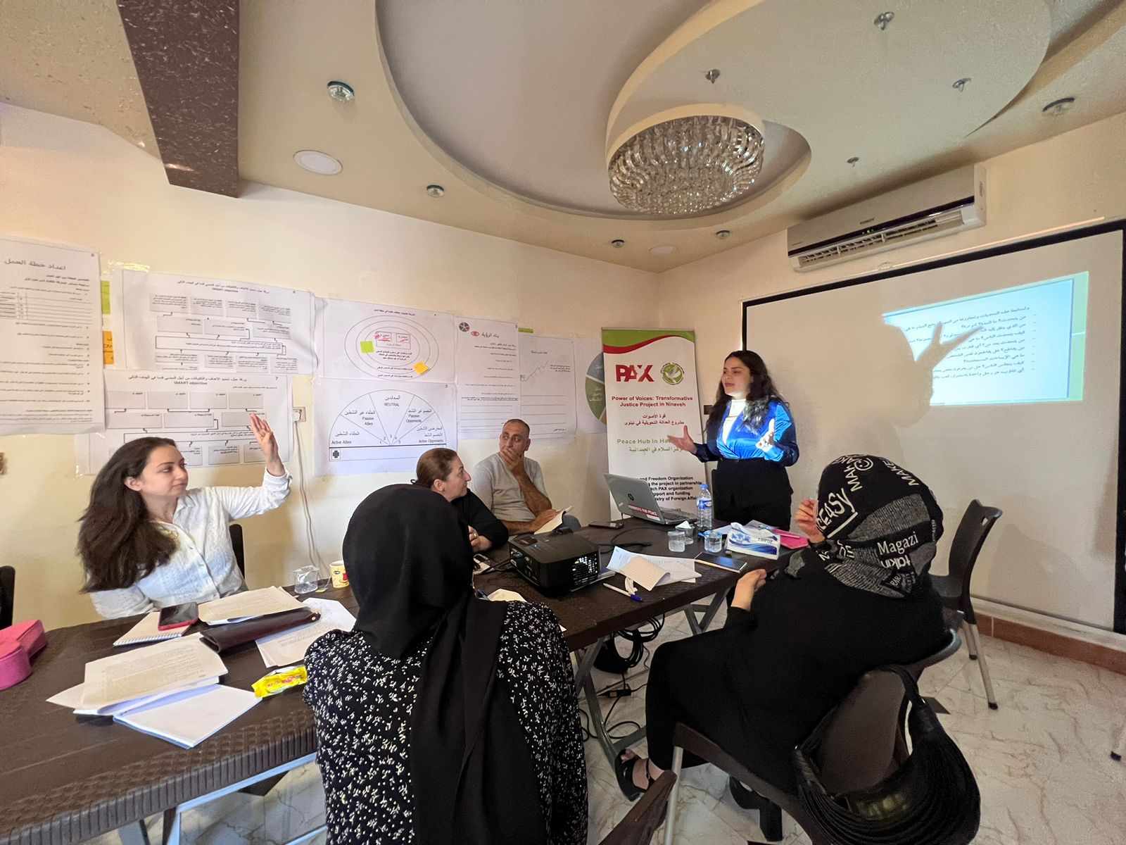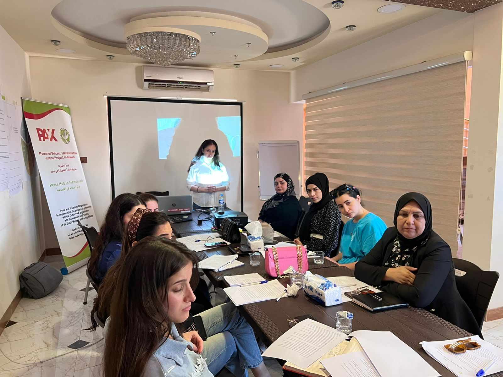 بتاريخ ٢/٨/٢٠٢٣ في مركز السلام في الحمدانية قدمت منظمة السلام والحرية تدريباً حول المهارات القيادية للشابات والنساء من قرقوش وبرطلة وبعشيقة، وهدف التدريب الى تعزيز مهارات المشاركات في التحدث الجماهيري وتيسير الجلسات والظهور الاعلامي وكذلك التحليل النقدي.