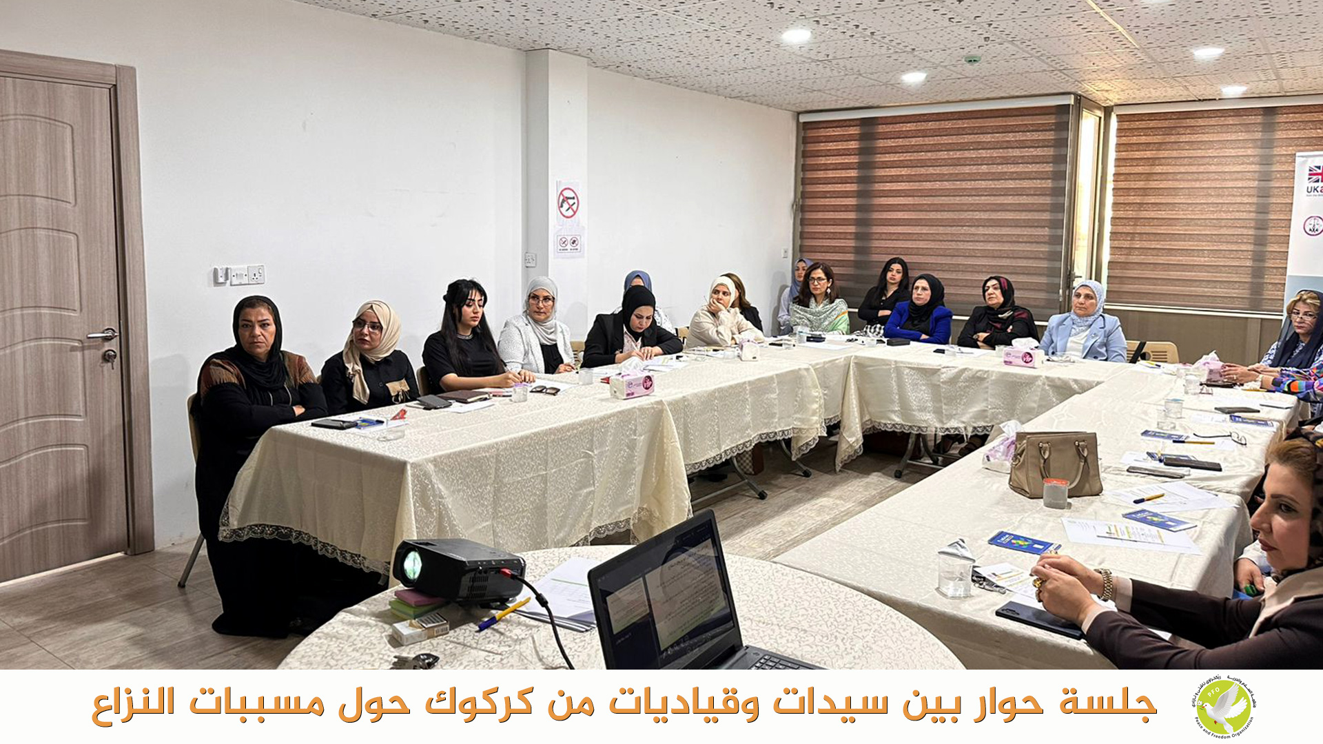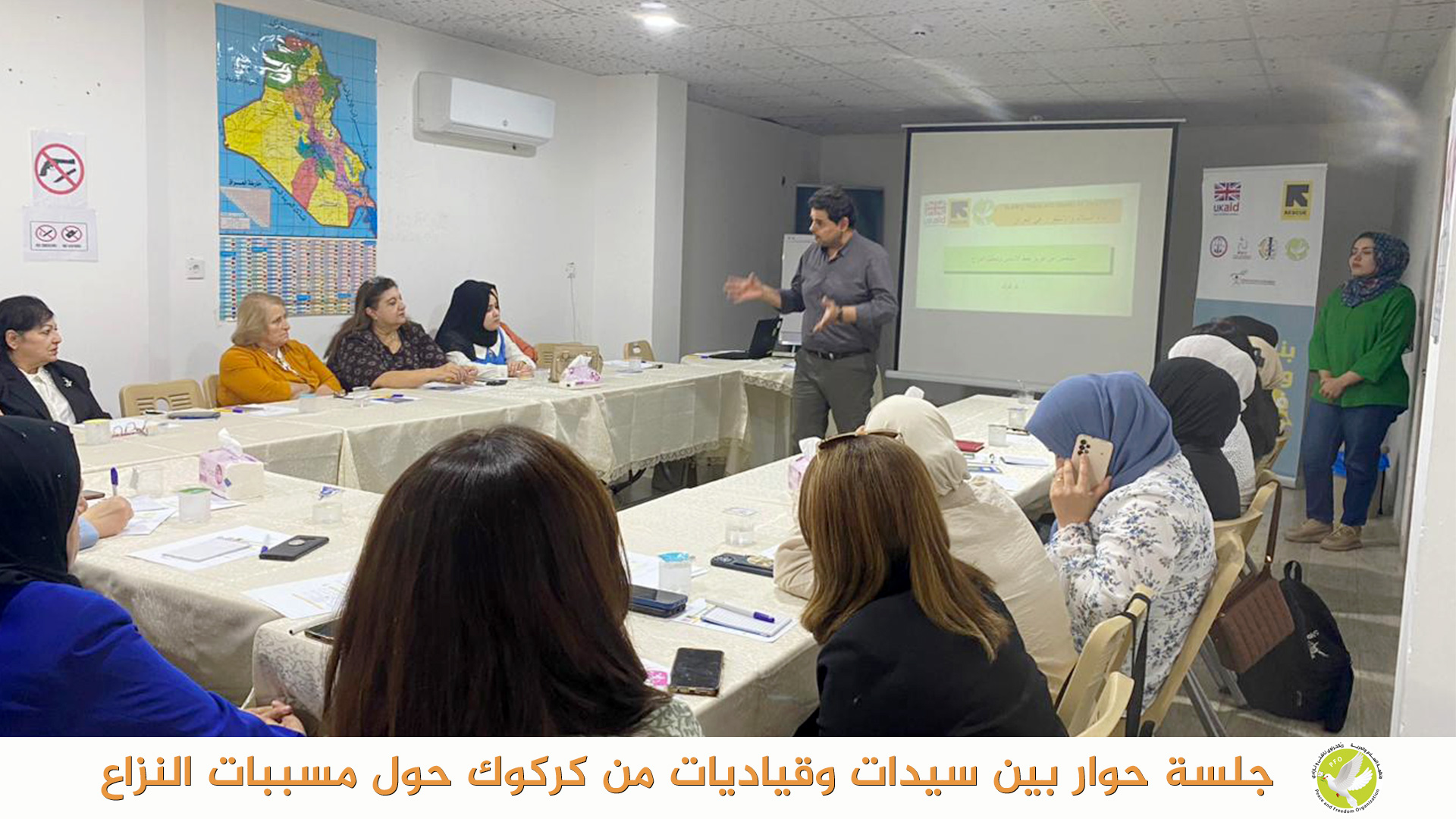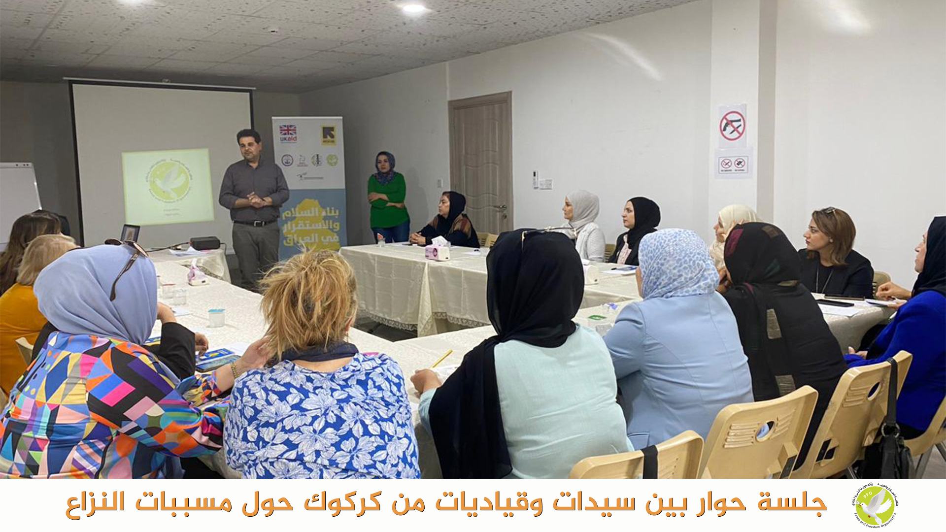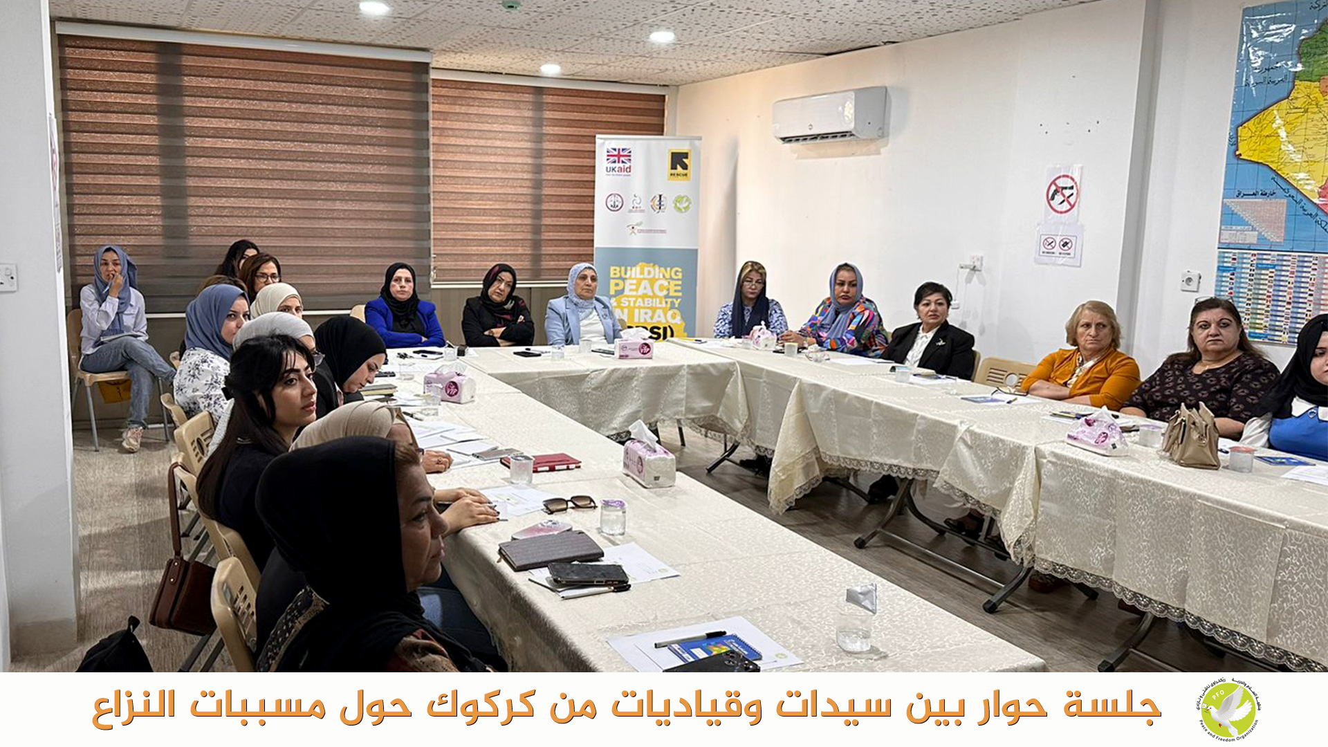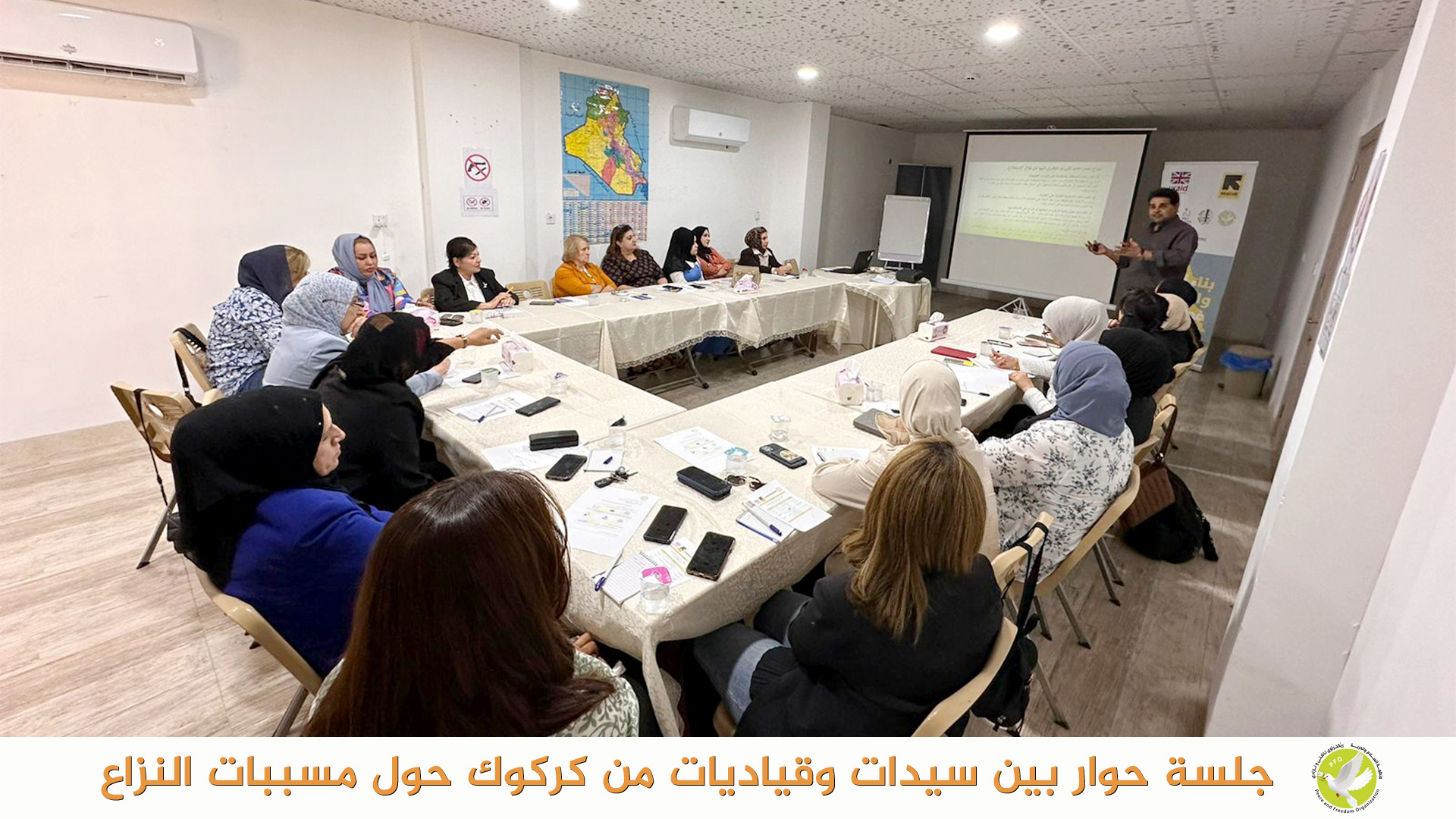 بتاريخ 23 تشرين الاول 2023 عقدت منظمة السلام والحرية في مدينة كركوك جلسة حوارية بين سيدات وناشطات وقياديات في المجتمع المدني في مدينة كركوك حول مسببات النزاعات بين المكونات ودور المجتمع المدني في التقليل من حدة هذه النزاعات، كذلك تم مناقشة اهمية مبادرات تعزز التماسك الاجتماعي وتعزز العودة الامنة للنازحين واستقرارهم.