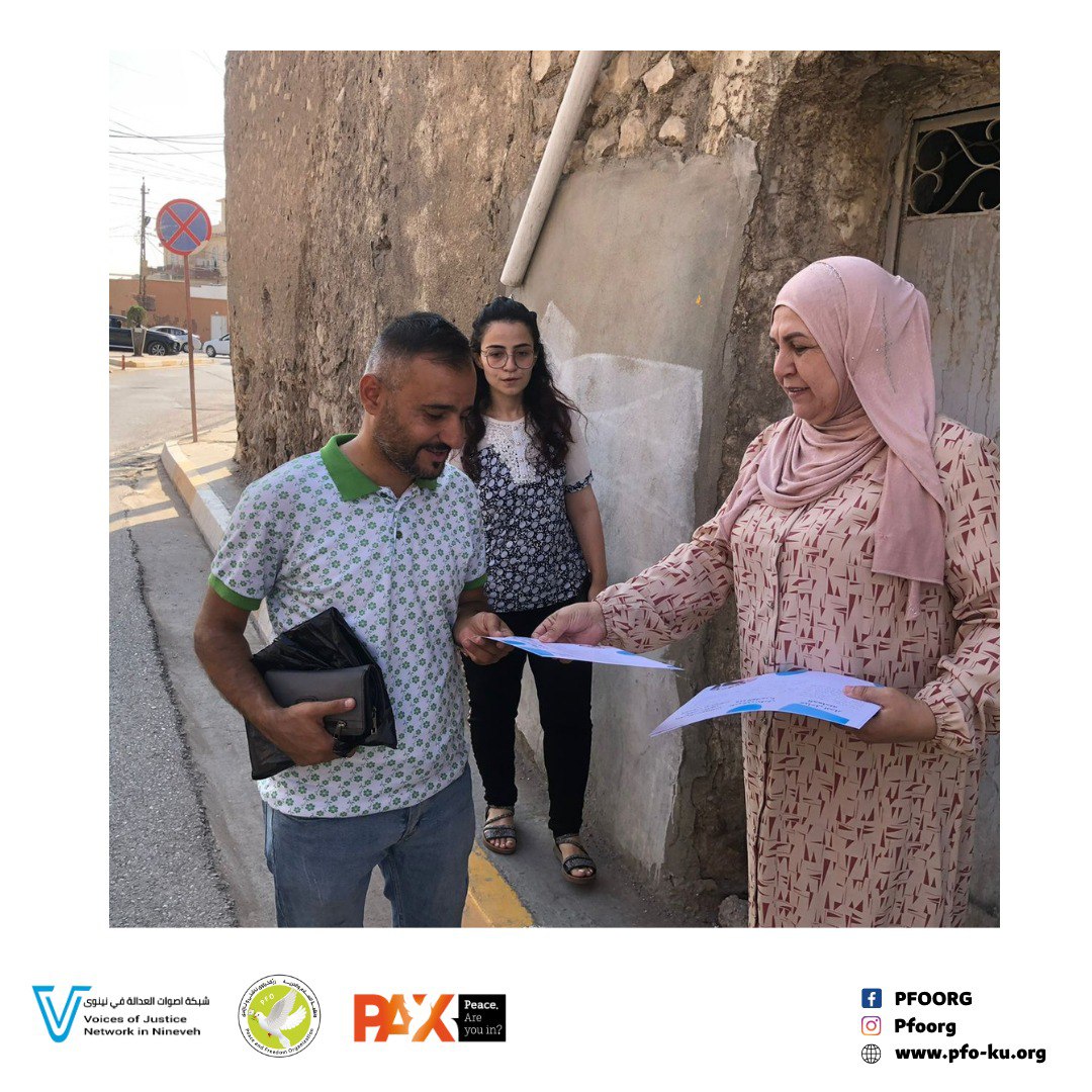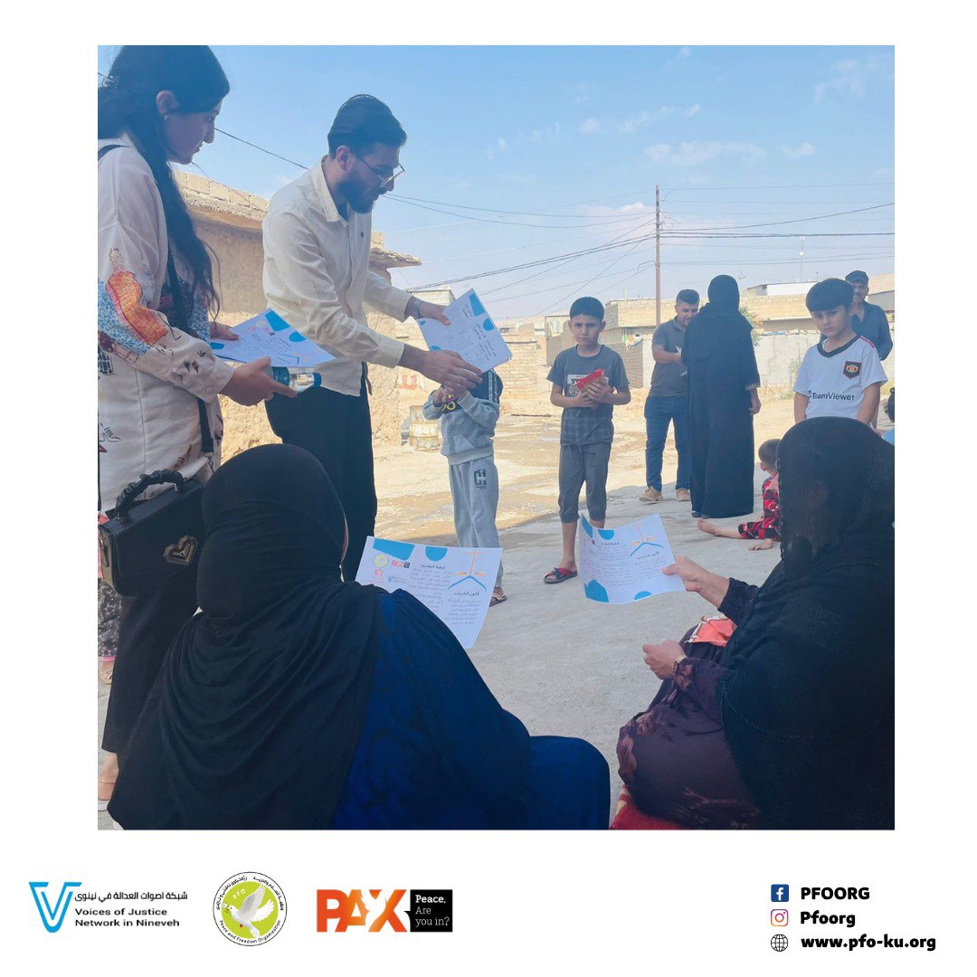 نفذت شبكة أصوات العدالة في نينوى مبادرة بعنوان (لتوعية وتعزيز الوعي القانوني والاجتماعي بحقوق النساء) بالتنسيق والتعاون مع فريق السلام المجتمعي في بعشيقة،