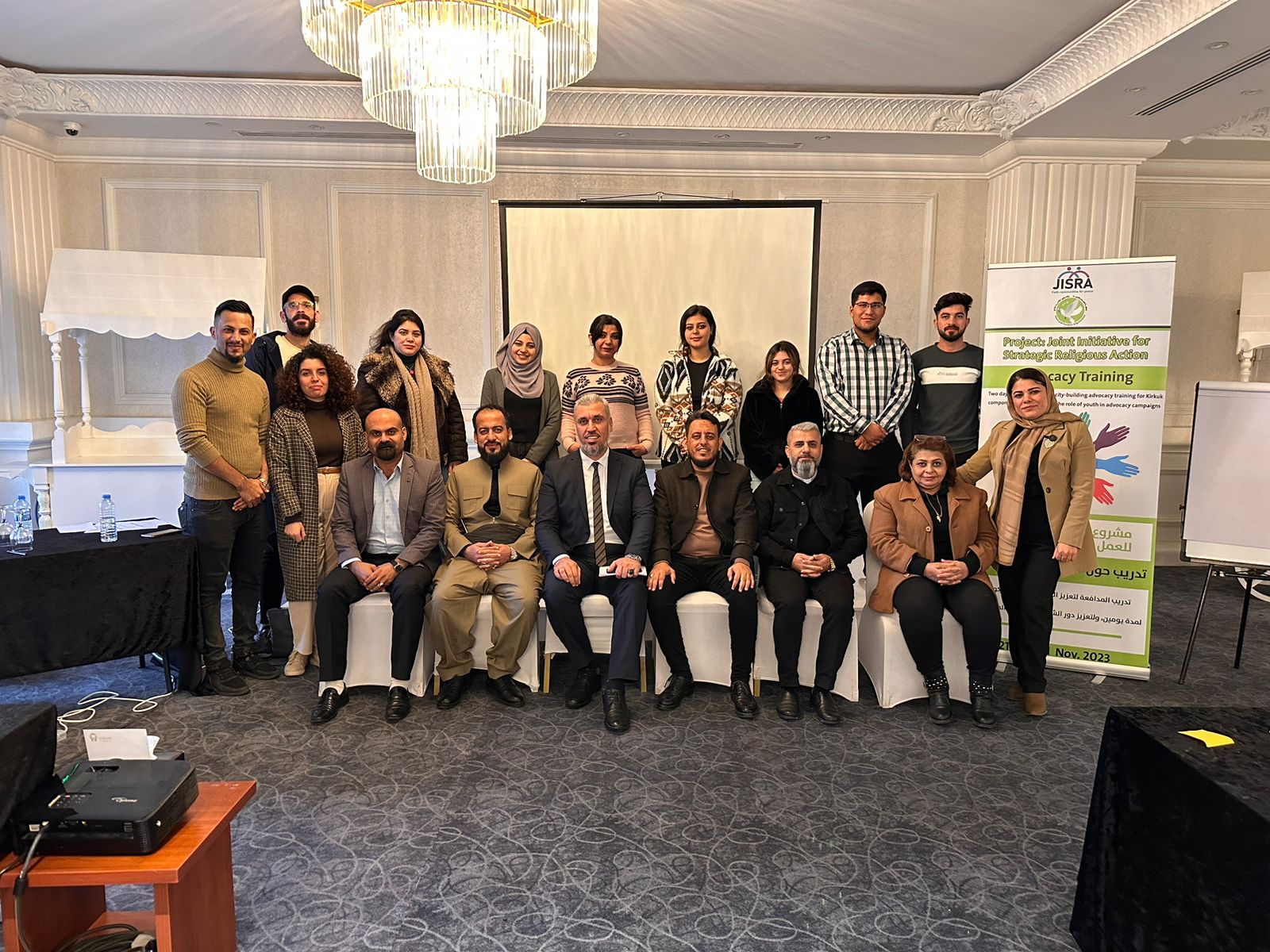 ضمن مشروع مبادرة مشتركة للعمل الديني الاستراتيجي-جسرا، نظمت منظمة السلام والحرية تدريباً حول مفاهيم المدافعة والمناصرة في أربيل وبتاريخ 21-22 تشرين الثاني 2023. وشارك في التدريب مجموعة من شباب وشابات وبحضور رجال الدين من محافظة كركوك.