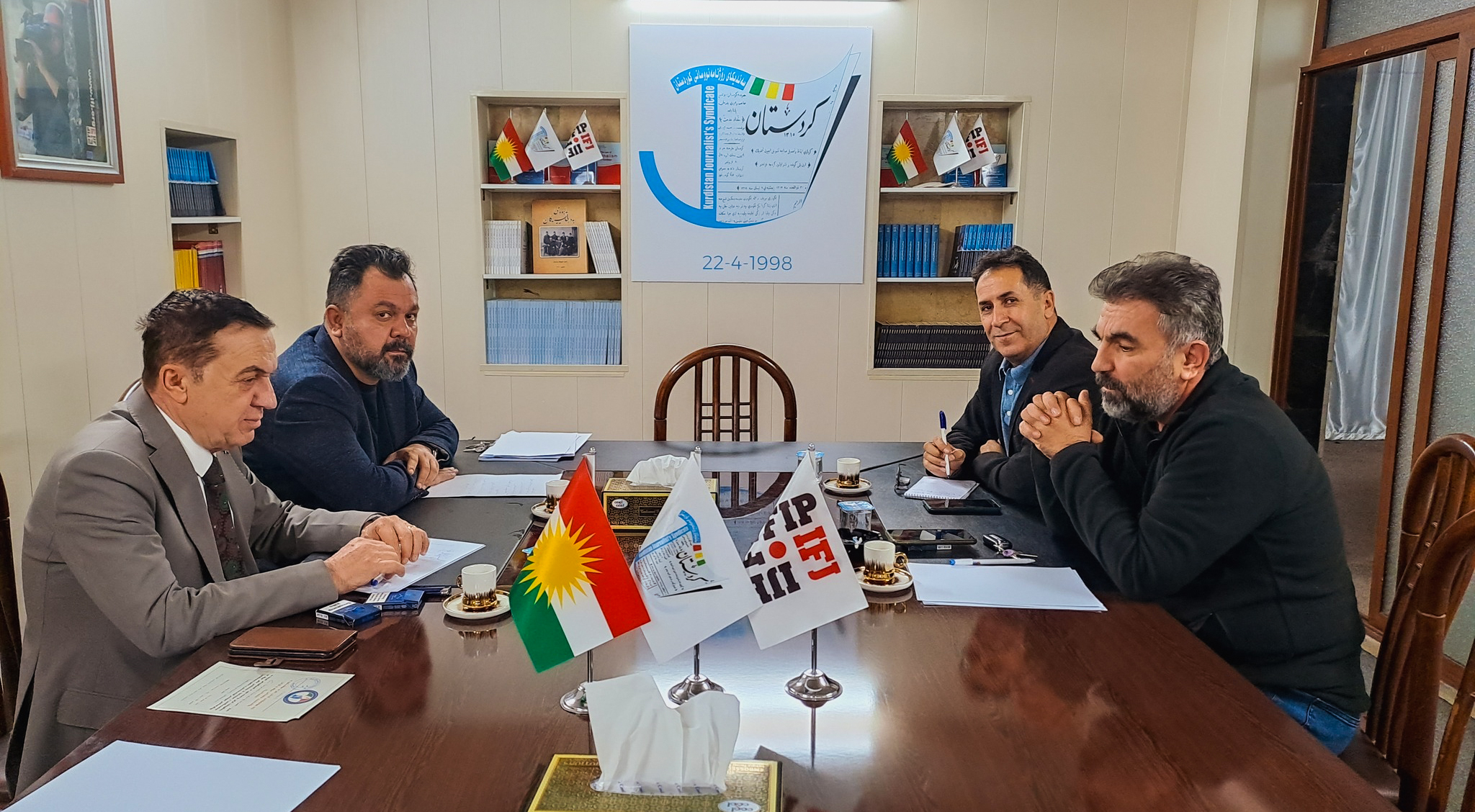1- لقاء مع كل من رئيس نقابة الصحفيين بأقليم كوردستان السيد ازاد حمدامين و نائبه السيد بزدار حاكم و ناقشنا كيفية التنسيق مع افرع النقابة فى كل من شيخان و كركوك و حلبجة من اجل اتاحة الفرصة لمشاركة اكبر عدد من الصحفيين فى التدريبين المقرر عقدها ضمن فعاليات المشروع.