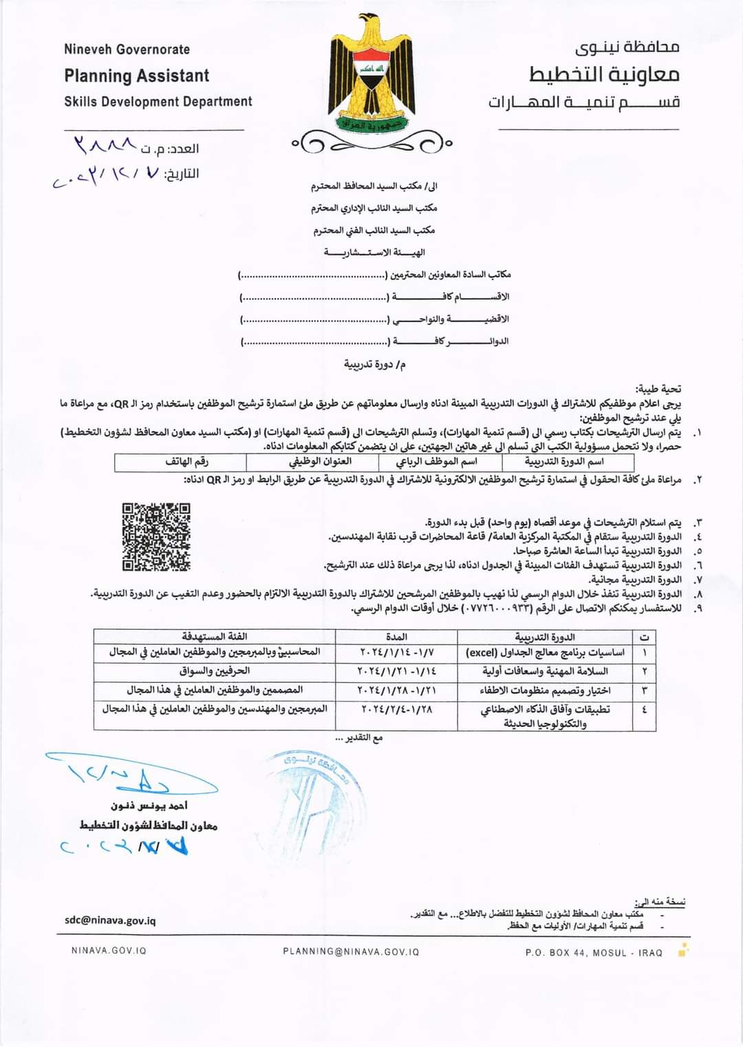 ومن نتائج الزيارة بعد ايام قليلة من تاريخها، وبعد ترحيب صناع القرار بمقترحات منظمة السلام والحرية وشبكة اصوات العدالة حول التحول الرقمي، اصدرت معاونية التخطيط في محافظة نينوى كتاباً بإجراء دورات تدريبية حول ادوات التحول الرقمي لكافة الدوائر في المحافظة.
