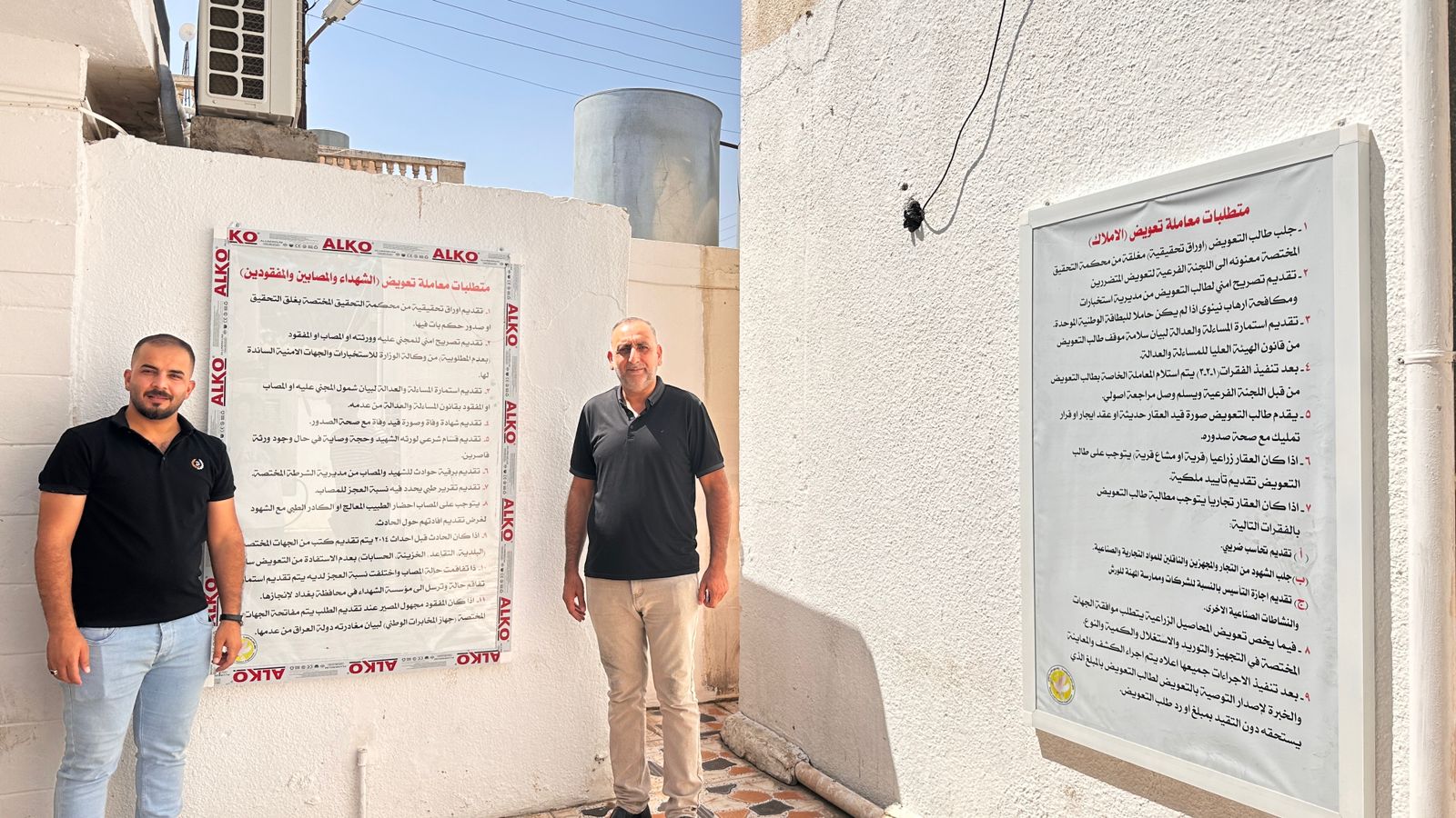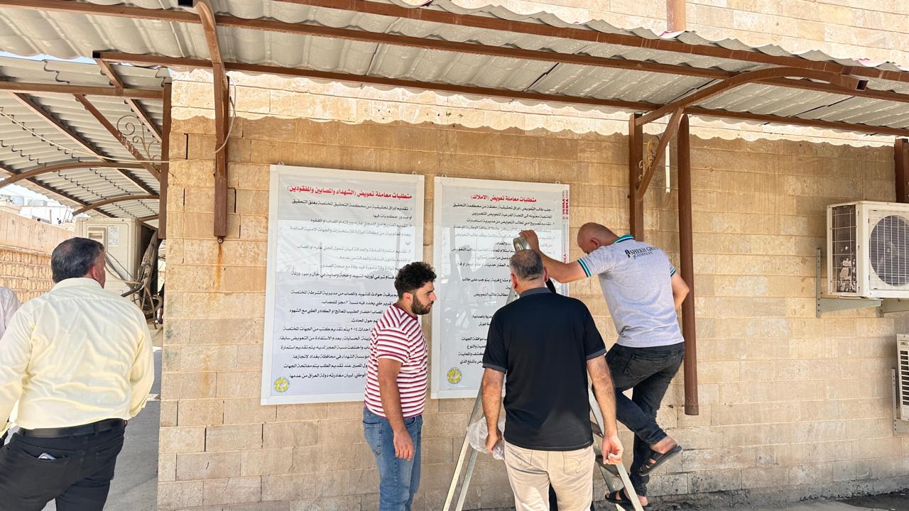في 21 يوليو 2024، قامت شبكة أصوات العدالة بدعم من منظمة السلام والحرية بطباعة وتوزيع لوحات إرشادية للمواطنين حول الأوراق المطلوبة لإنجاز معاملاتهم في مكتب اللجنة الفرعية الاولى لتعويض المتضررين في محافظة نينوى وكذلك في مكتب تعويضات تلكيف .