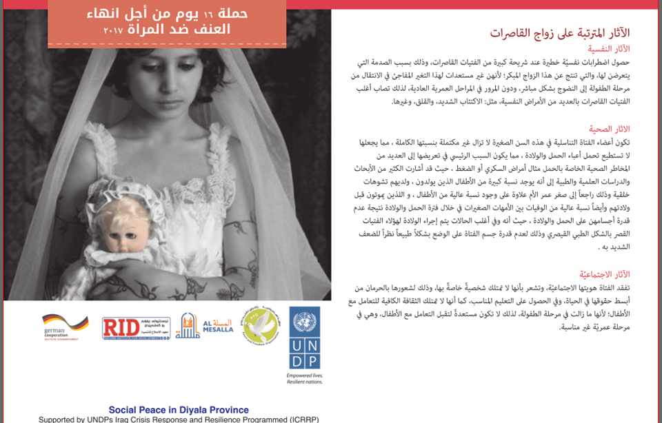 العنف ضد المرأة والتي إستمرت فعالياتها وأنشطتها 16 يوما والتي تبدأ من 25 نوفمبر والى 10 ديسمبر ونُظمت الحملة في بعقوبة مركز محافظة ديالى.