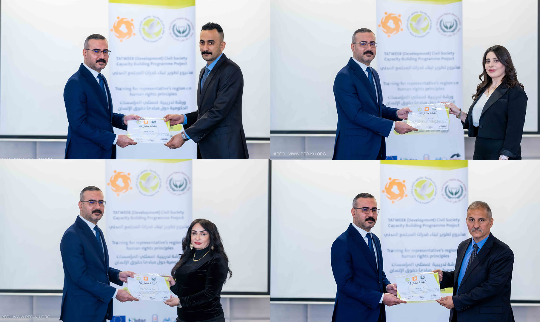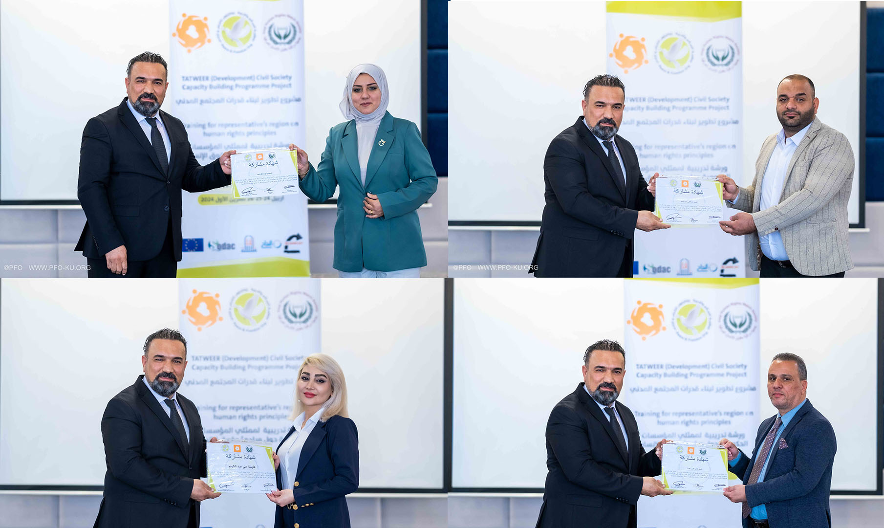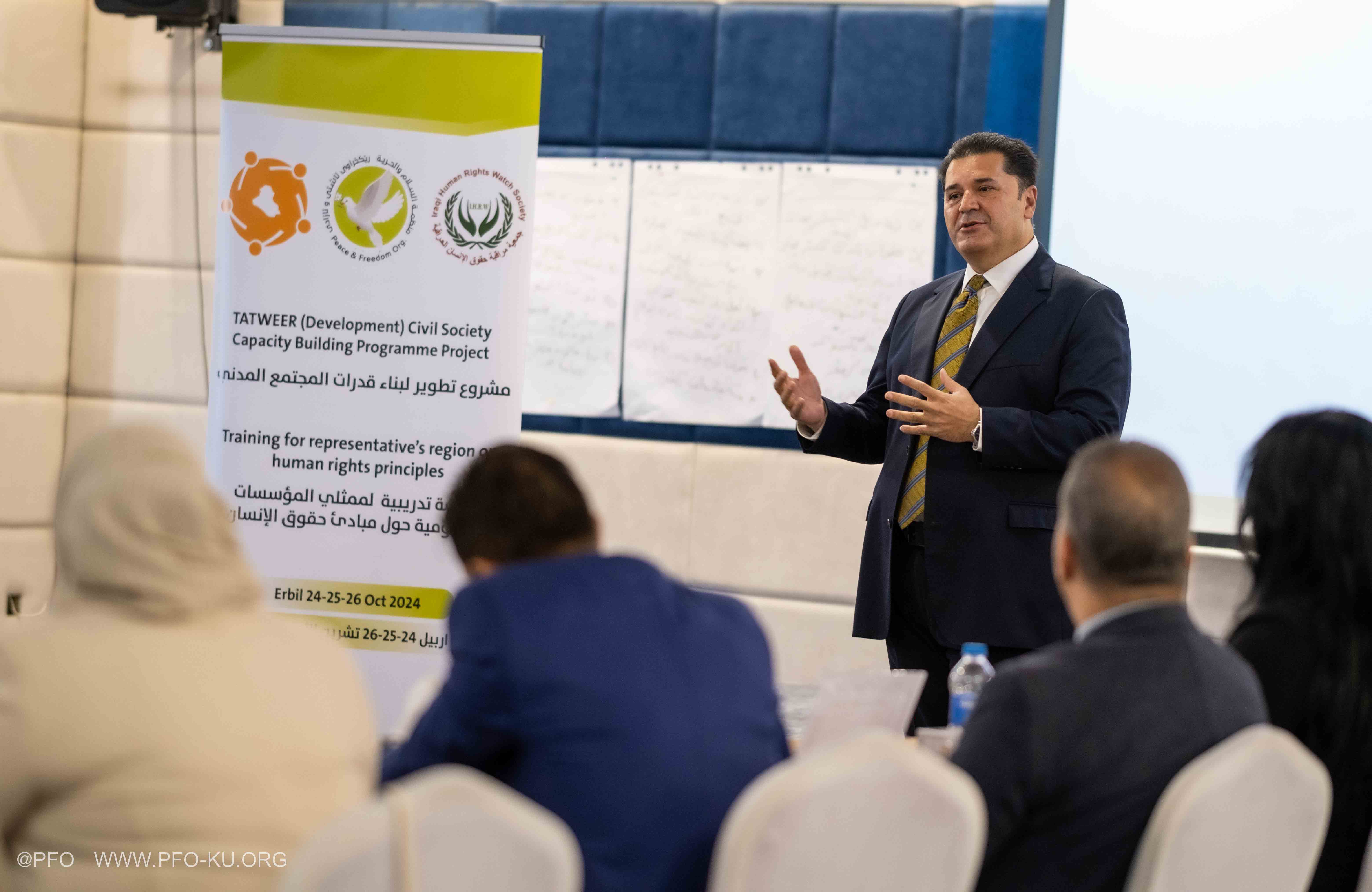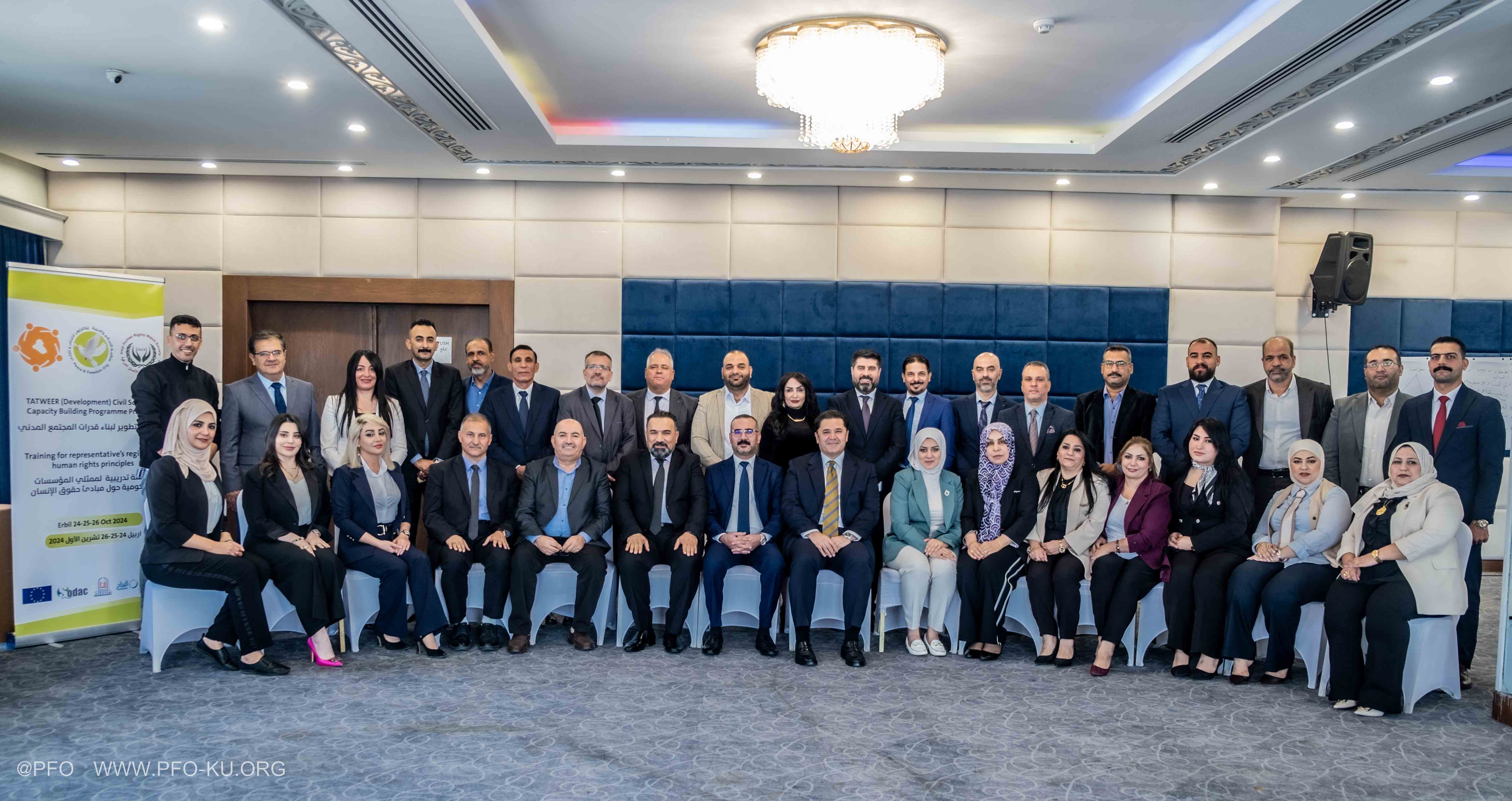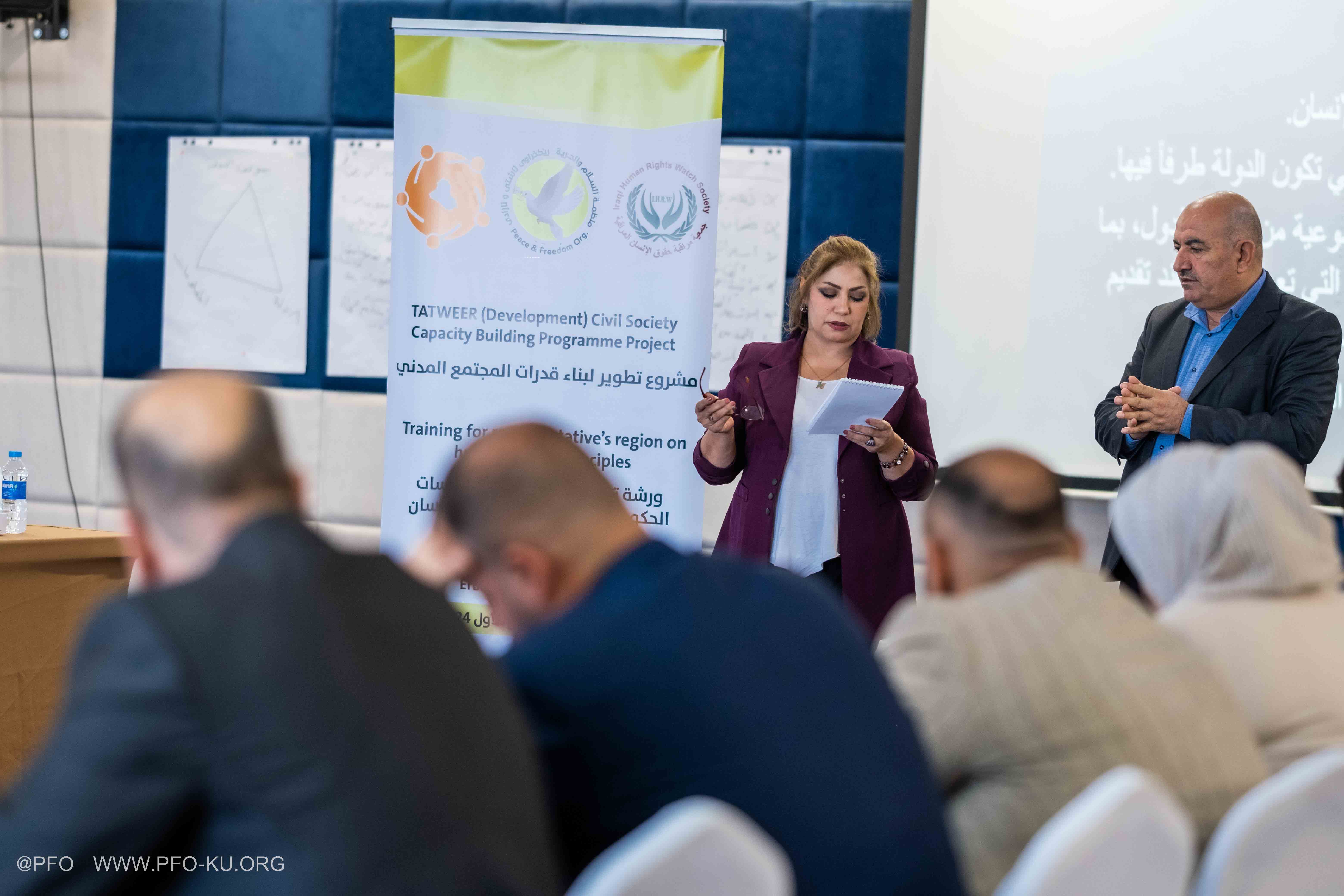 من أجل دعم وتعزيز الهياكل الوطنية المعنية بحقوق الإنسان أقامت منظمة السلام والحرية PFO وجمعية مراقبة حقوق الإنسان العراقية IHRW ضمن برنامج تطوير TATWEER Project بتمويل الاتحاد الأوروبي EU وتنفذه منظمة "جسر الی UPP الايطالية" بالشراكة مع منظمة المسلة، مركز النجاح ومنظمة شاقوفيان ورشة العمل الثانية لمدراء أقسام حقوق الإنسان في الوزارات والهيئات العراقية الخاصه بمتابعة تنفيذ التوصيات الدولية الخاصة بحقوق الإنسان بالتعاون مع وزارة العدل العراقية دائرة حقوق الإنسان ومكتب التوصيات الدولية في حكومة اقليم كوردستان بمشاركة ممثلين عن الأمانة العامة لمجلس الوزراء ووزارة الداخلية ومجلس القضاء الأعلى وهيئة النزاهة الاتحادية وجهاز الأمن الوطني ومستشارية الأمن القومي وجهاز مكافحة الإرهاب وهيئة الإعلام والاتصالات وهيئة الحشد الشعبي ووزارة المالية ووزارة الثقافة وديوان الرقابة المالية ودائرة الإصلاح العراقية في وزارة العدل ودائرة إصلاح الأحداث في وزارة العدل ووزارة الصناعة والمعادن ووزارة الأعمار والإسكان والبلديات والهيئة الوطنية للمساءلة والعدالة ومؤسسة الشهداء وديوان الوقف الشيعي وديوان الوقف السني وديوان وديوان أوقاف الديانات المسيحية مدة ثلاثة ايام ٢٤-٢٦ تشرين الأول 2024 في اربيل. وتضمنت ثلاثة محاور رئيسية ، تناول الأول اسس نظام معاهدات حقوق الأنسان ، والثاني الأليات الوطنية لإعداد التقارير والثالث التطبيق العملي والتحديات والحلول. حيث تفاعل المشاركون مع الفقرات التدريبة بشكل واضح بدافع تطوير مهاراتهم وكتابة الردود على التوصيات الدولية بشكل مهني .
