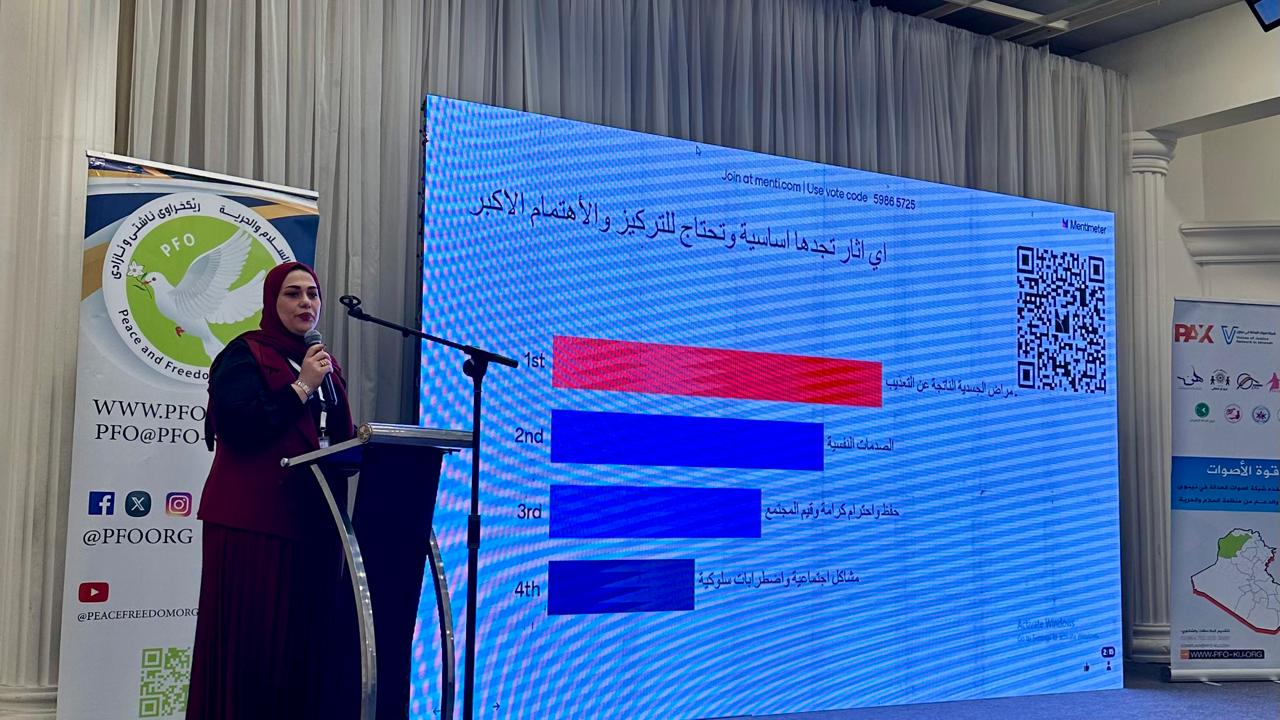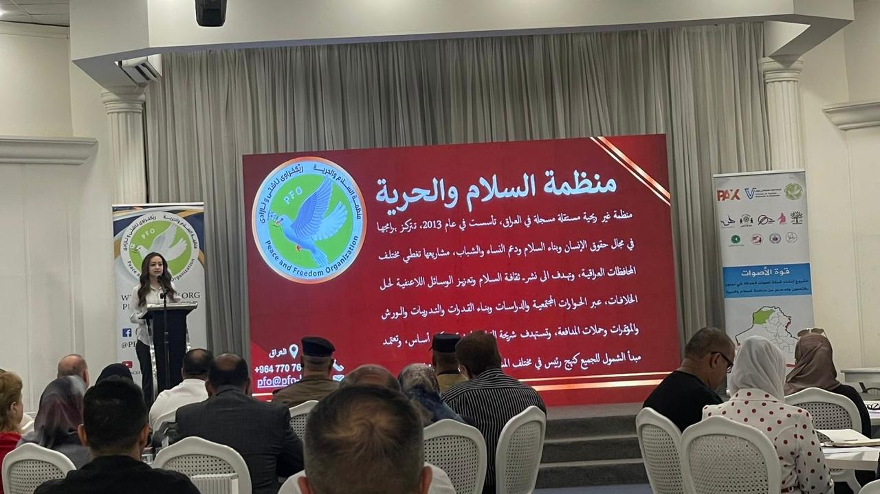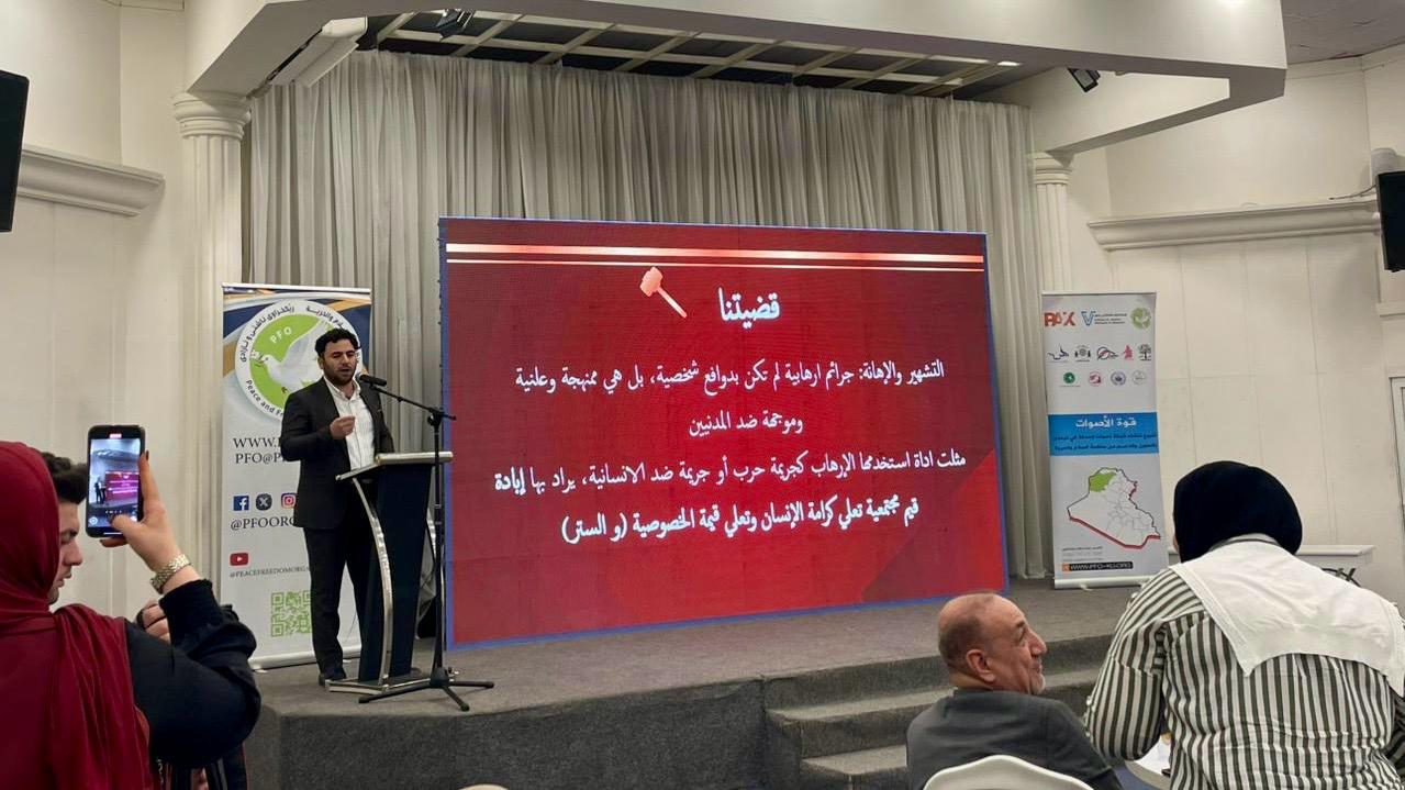 نينوى | 22 حزيران 2025 - عقدت شبكة أصوات العدالة (منظمة لهن و فريق أنين ومنظمة سحب الخير)، برعاية منظمة السلام والحرية، ندوة حوارية بعنوان "جبر الضرر المعنوي لضحايا جريمة التشهير والإهانة الإرهابية" في الموصل، بمشاركة مفوضية حقوق الانسان و مكتب مجلس النواب، والشرطة المجتمعية، ومجموعة من الناجين والناجيات، ونشطاء حقوق الإنسان، وقانونيين وممثلين عن مؤسسات الدولة والمجتمع المدني.