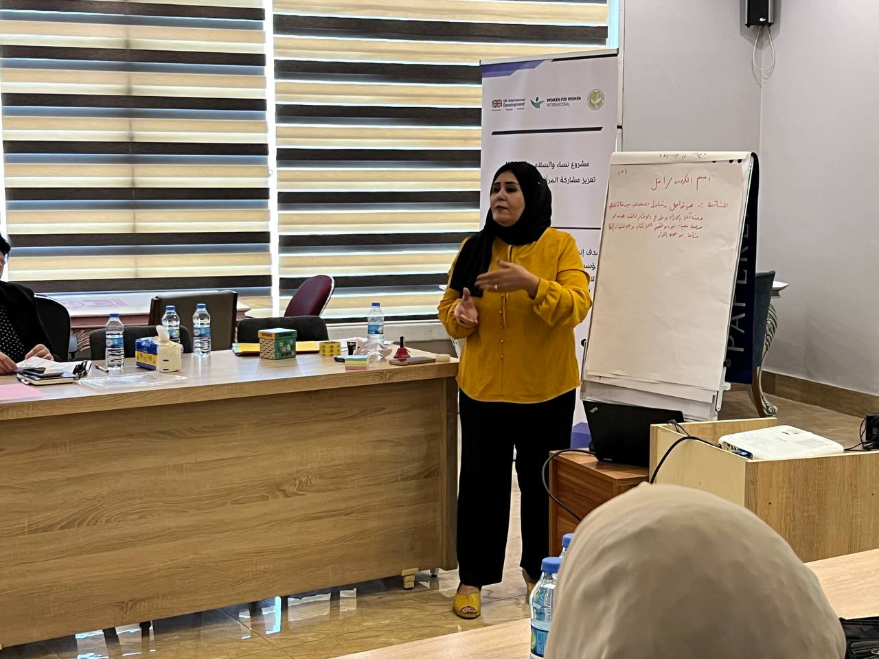 الورشة ضمن مشروع تعزيز مشاركة المرأة في السلام والأمن المنفذ من قبل منظمة السلام والحرية وبالشراكة مع منظمة النساء من اجل النساء العالم