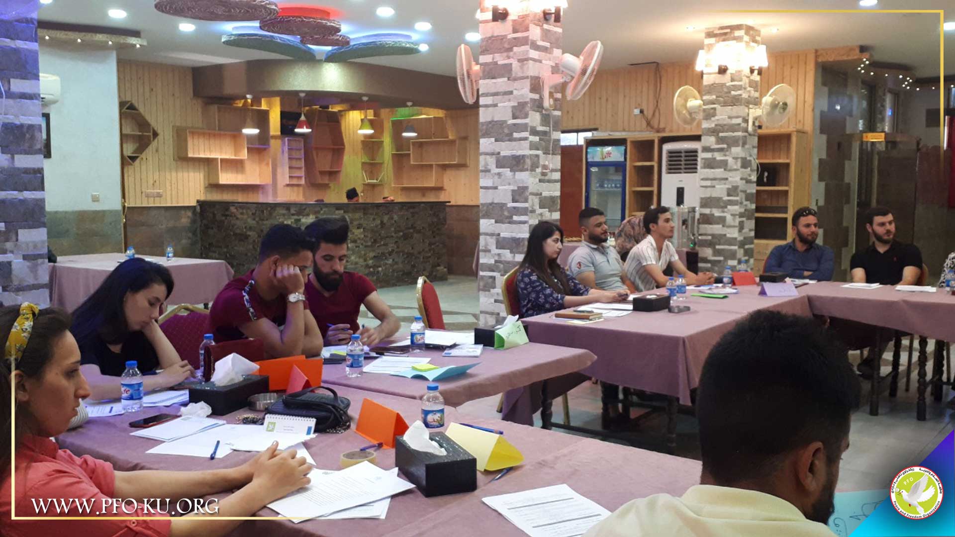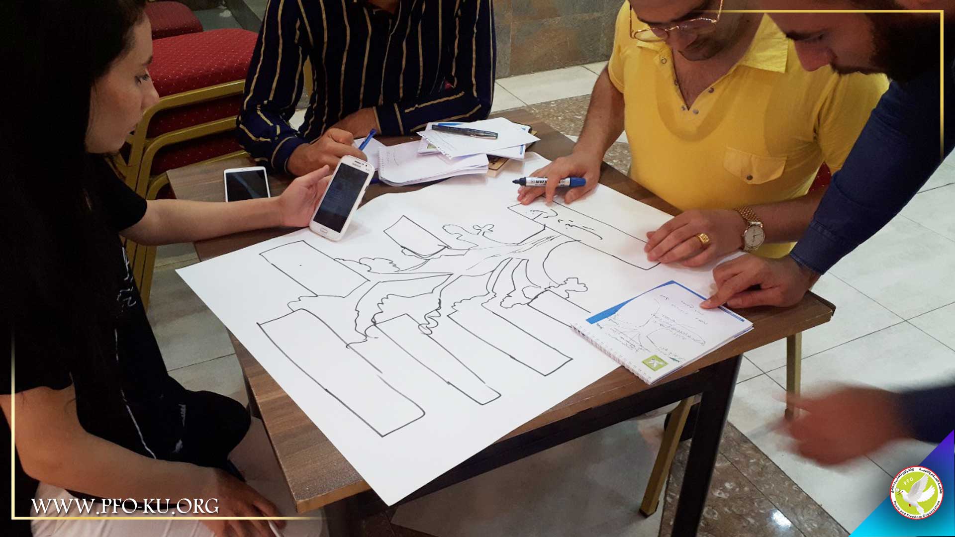 تضمن التدريب تمارين متنوعة بين محاضرات ومجاميع عمل لتعزبز روح الفريق والتعاون بين الشباب، حيث كان المدرب خضر الدوملي، وقدم خلال ايام التدريب مفهوم النزاع والاقليات الموجودة في العراق وركز على اقليات ومكونات سهل نينوى وختم بمفهوم التماسك الاجتماعي في اليوم الاخير من التدريب.