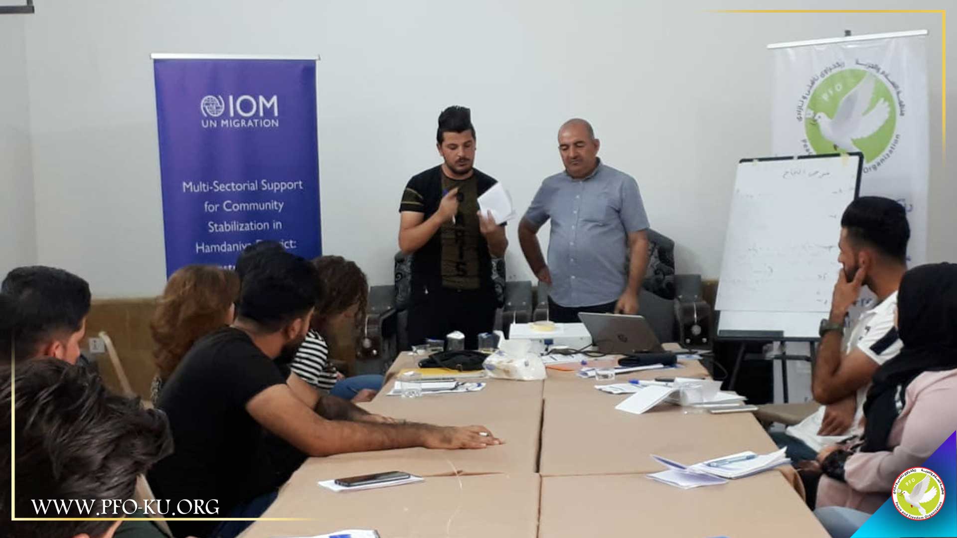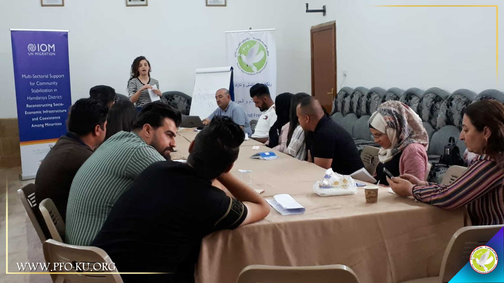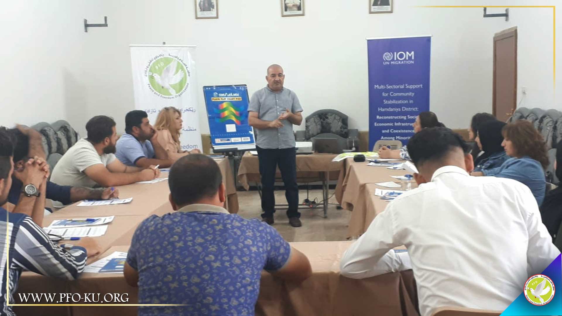 ضمن مشروع "كلنا نحب سهل نينوى" اقامت منظمة السلام والحرية بدعم من منظمة الهجرة الدولية IOM بتنظيم ورشة تدريبية ل 24 شباب من مركز قضاء الحمدانية – قرةقوش ومن مكوناتها المختلفة.
