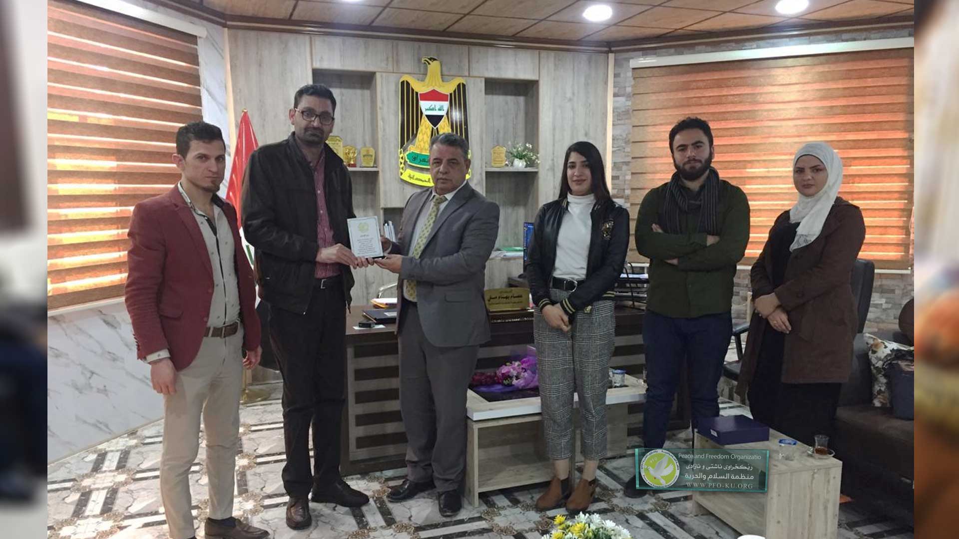 يوم الثلاثاء الموافق 17 ديسمبر 2019 قام مستشار وأعضاء فريقي المدافعة منظمة السلام والحرية ضمن لجان السلام المجتمعية بزيارة ميدانية الى قضاء الحمدانية والموصل واللقاء مع السادة كل من الاستاذ عصام دعبول قائممقام قضاء الحمدانية والقاضي مظفر مهدي رئيس اللجنة الفرعية لتعويض المتضررين في نينوى لمناقشة حملة المدافعة وكسب التأييد مع أصحاب القرار الحكومي في بغداد حول قضية ( التعديل الثاني لقانون رقم 20 لسنة 2009 المعدل لتعويض المتضررين من جراء العمليات الحربية والأخطاء العسكرية والعمليات الإرهابية)، وهذه الزيارة كانت من أجل مناقشة قصص النجاح لتعديل بعض فقرات القانون ومشاركة اليات العمل والخطة الإستراتيجية لفريق المدافعة في الحملات والمبادرات المستقبلية على مستوى الحكومة المحلية في نينوى والحكومة المركزية في بغداد، لتغيير السياسات من خلال التشريعات القانونية والقرارات التنفيذية مع السلطات التشريعية والتنفيذية والقضائية والمؤسسات الوطنية والقضايا الإجتماعية في المجتمع لتعزيز أواصر التماسك الإجتماعي والتعايش السلمي وبناء السلام بين الفئات المجتمعية في محافظة نينوى ومدينة الموصل وسهل نينوى تسكنها الأقليات الدينية والعرقية، وفي نهاية الزيارة تكريم السادة المذكورة أسماءهم أعلاه بالدرع الإبداع والتميز وشهادة شكر وتقدير تثميناً لجهودهم وتعاونهم ومساندتهم ودعمهم المعنوي لفريق المدافعة في نينوى.