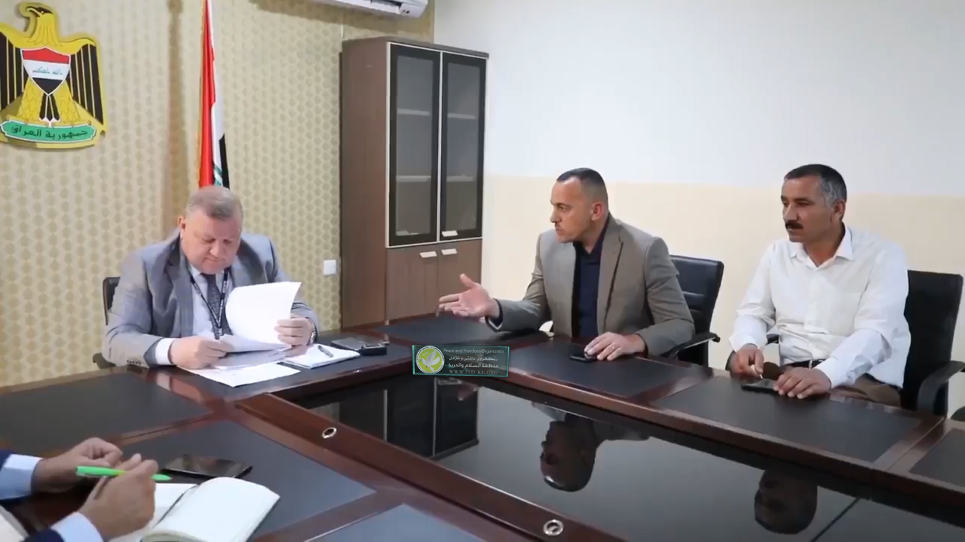 لقاء قائممقام قضاء الموصل زهير الاعرجي مع فریق المدافعة لاعرجي يلتقي أعضاء من فریق المدافعة التابعة لمشروع لجان السلام المحلية في نينوى، المشروع هو من احد مشاریع منظمة السلام والحرية.