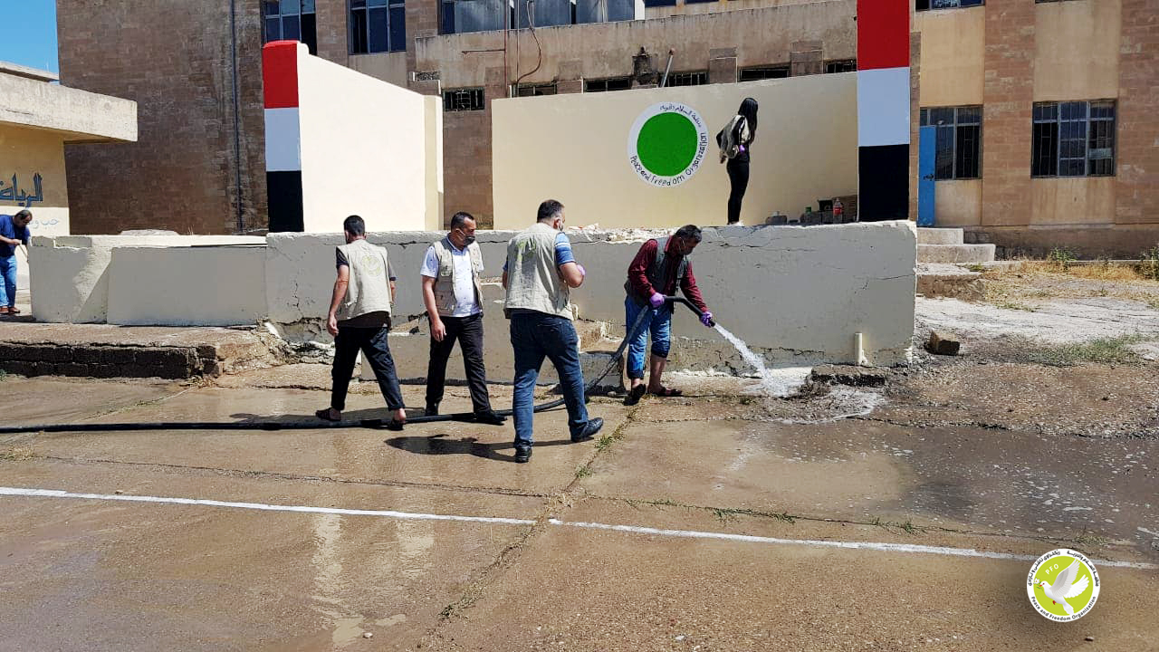 تم رفع المحرقة وإعادة تأهيل الموقع من التنظيف والصبغ والرسم لتعزيز أواصر التعايش السلمي بين الطلبة، وترميم المسرح الحالي وسط الساحة وتوفير حاويات للنفايات مع تجهيز المدرسة بسماعة كبيرة للمناسبات.