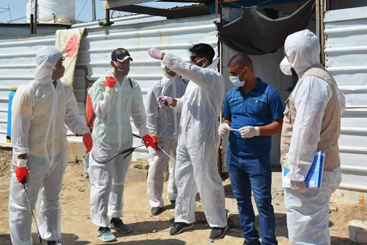 بتاريخ 23/6/2020 فريق سيرجو دي ميلو للاستجابة السريعة للكوارث والازمات SIRT ذراع منظمة السلام والحرية PFO وبالشراكة تطهير وتعقيم مخيم النازحين مع شبكة العيادات القانونيه LCN في محافظة كربلاء باشر بتطهير وتعقيم مخيم النازحين الواقع على الطريق الرابط بين محافظة كربلاء ومحافظة النجف حيث تم تعقيم مايقارب ٢٠٠ كرفان تسكنه العوائل النازحه وبالاضافه الى ٧٥ كرفان يسكنه عدد من المواطنين الذي تم منحهم الكرفانات في المخيم.