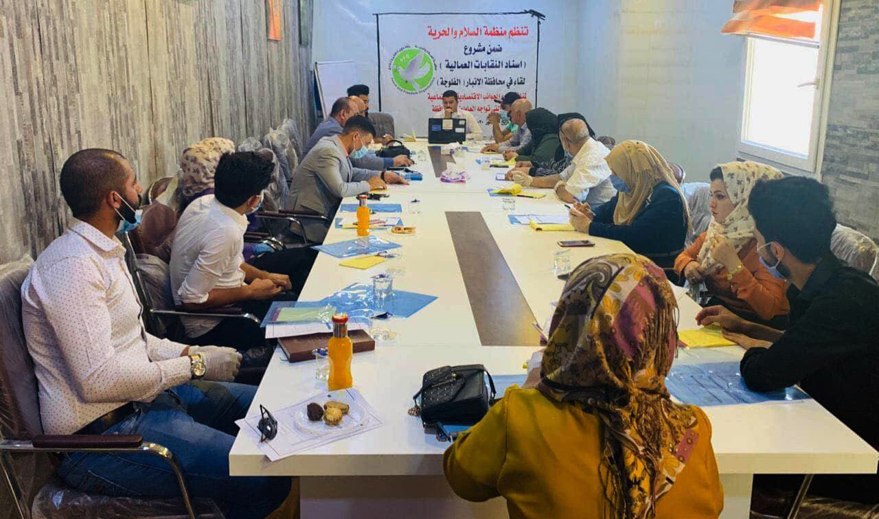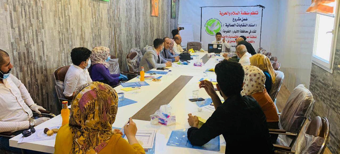 ضمن مشروع اسناد النقابات العراقية الذي تنفذه منظمة السلام والحرية في خمسة محافظات عراقية اختتمت يوم ٢١/تموز/٢٠٢٠ الجلسة الرابعة من المشروع في محافظة الانبار (الفلوجة ) جلسة مناقشة واقع العمال في المحافظة نتيجة الظروف الحالية بالاضافة الى التاثيرات السلبية على العمال في ظل تكرار الهجمات الارهابية على المحافظة وايضا في ظل جائحة كورونا والظروف الاقتصادية التي تمر بها البلاد.