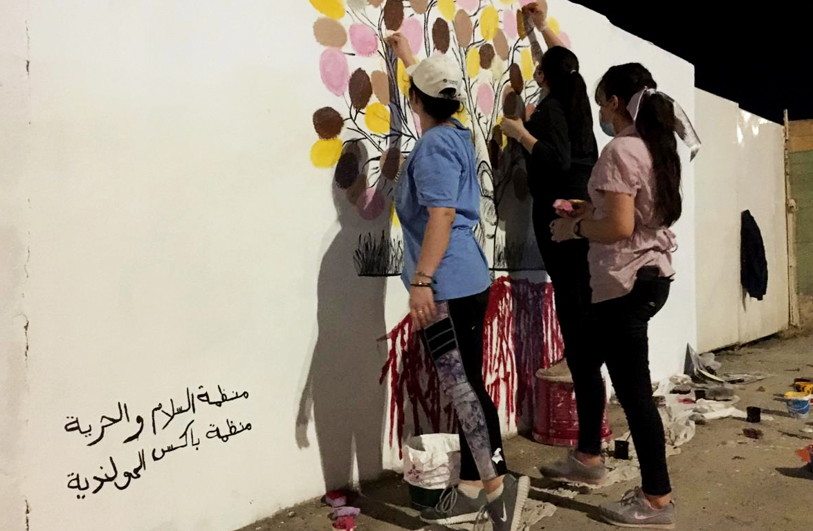 تم اليوم 31 تموز2020 تنفيذ مبادرة رسم على الحائط في مركز قضاء الحمدانية (قرةقوش) – نينوى، وان اللوحة هي من عمل مساواة - لبنان (جمعية تيرو للفنون) رسم الفنانة نور درمسيس.