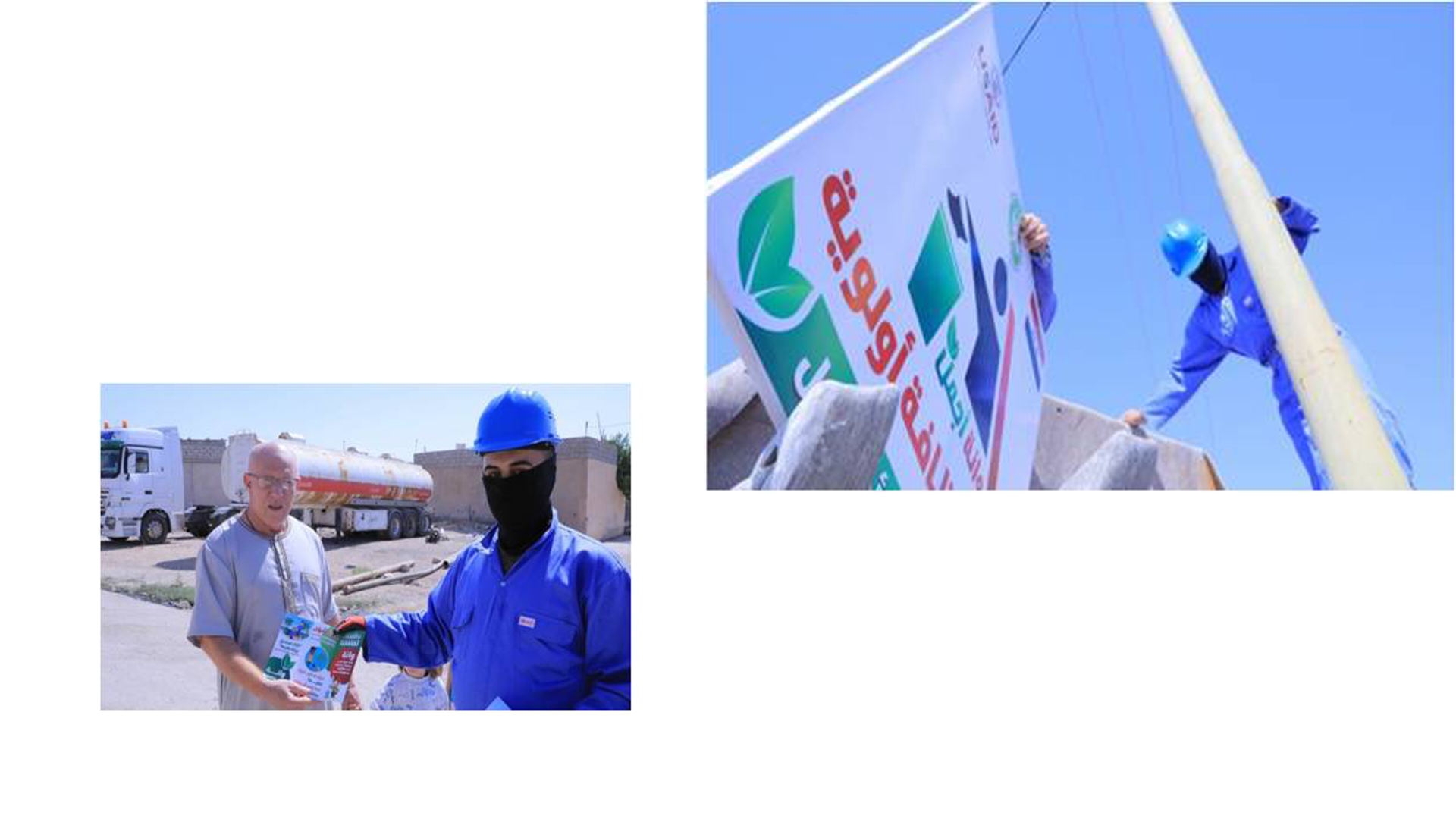 كذلك تمتنظيم حملات تنظيفية لمدة 15 يوم لأتاحه فرص عمل للأبناء الناحية وبتشغيل 25 عامل مع تجهيز كامل المستلزمات تنظيفوالاحتياجات الصحة والسلامة العامل خلال الحملة مع استئجار سيارة (شوفل) لمدة 15 يوم لتنظيف المناطق النفايات الصلبة التي لم تستطيع الأدرة البلدية وانة في تنظيفها وذلك لعدم توفير الأليات الازمة والقدرة على سيطرة كل المناطق.