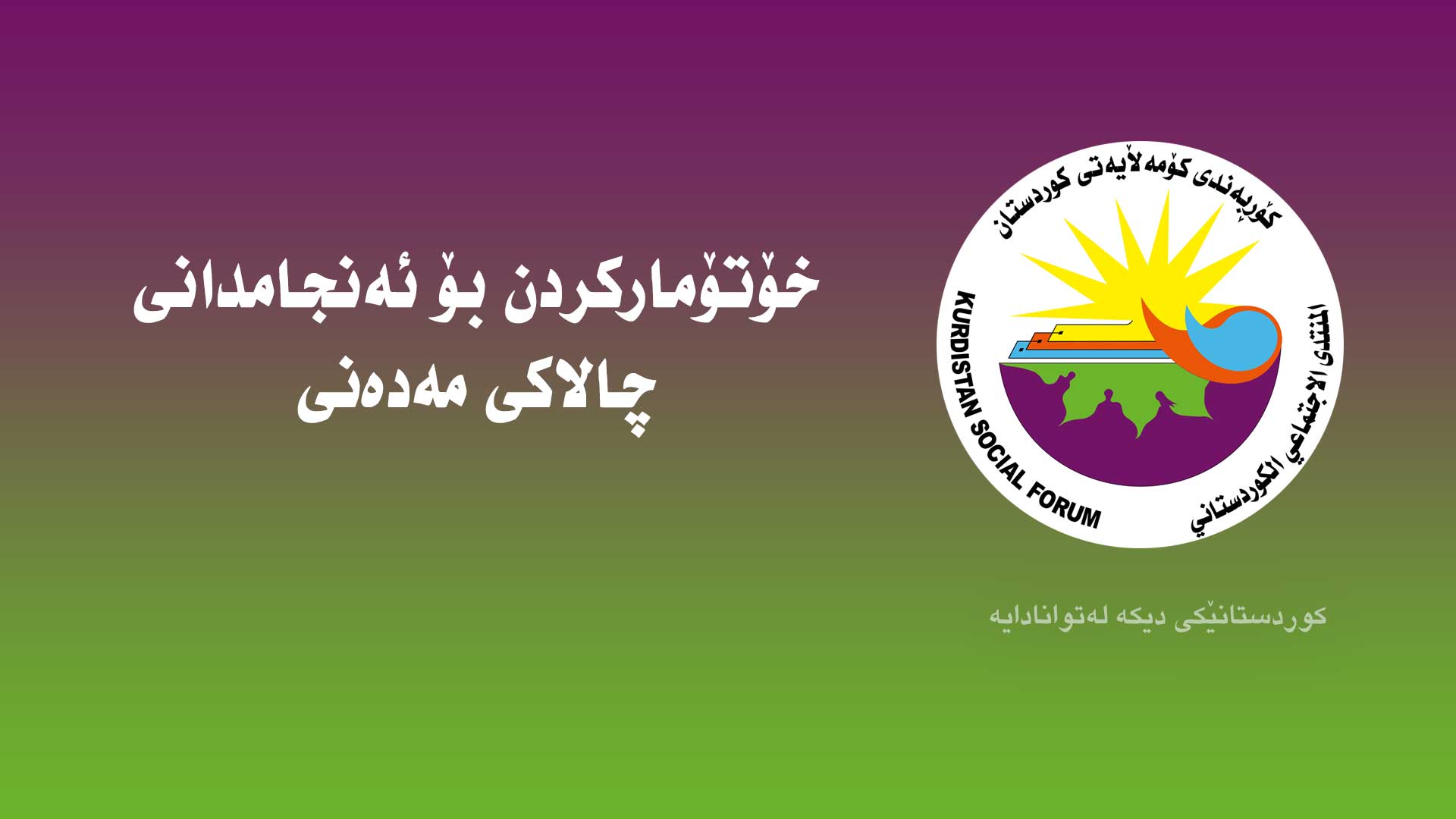 بهسهرچاوهگرتن لهو ئهزموونه پێشڕهوهدا،كه بهشێك له كوردستانیان تیایدا بهشداربوون له رێگهی بهشداریكردن له چالاكییهكانی كۆڕبهندی كۆمهڵایهتی جیهانی، گهیشتین بهم خاڵه گرنگانه: