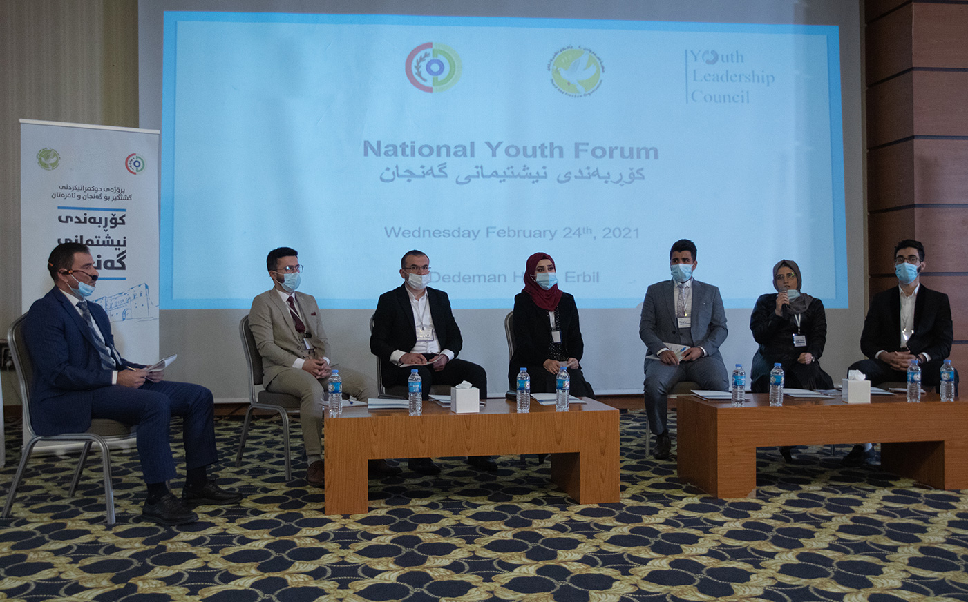 بەبەشداری و ئامادەبونی بەشێك لەنوێنەرانی دامودەزگاكانی هەرێمی كوردستان لەسەر ئاستی پەڕلەمان و حكومەت و وەزارەتەكان، كۆڕبەندی نیشتیمانی گەنجان لەشاری هەولێر بەڕێوەچوو كە تیایدا ژمارەیەك پانێل دەربارەی پرس و داواكاری و كێشەكانی گەنجان پێشكەشكران.