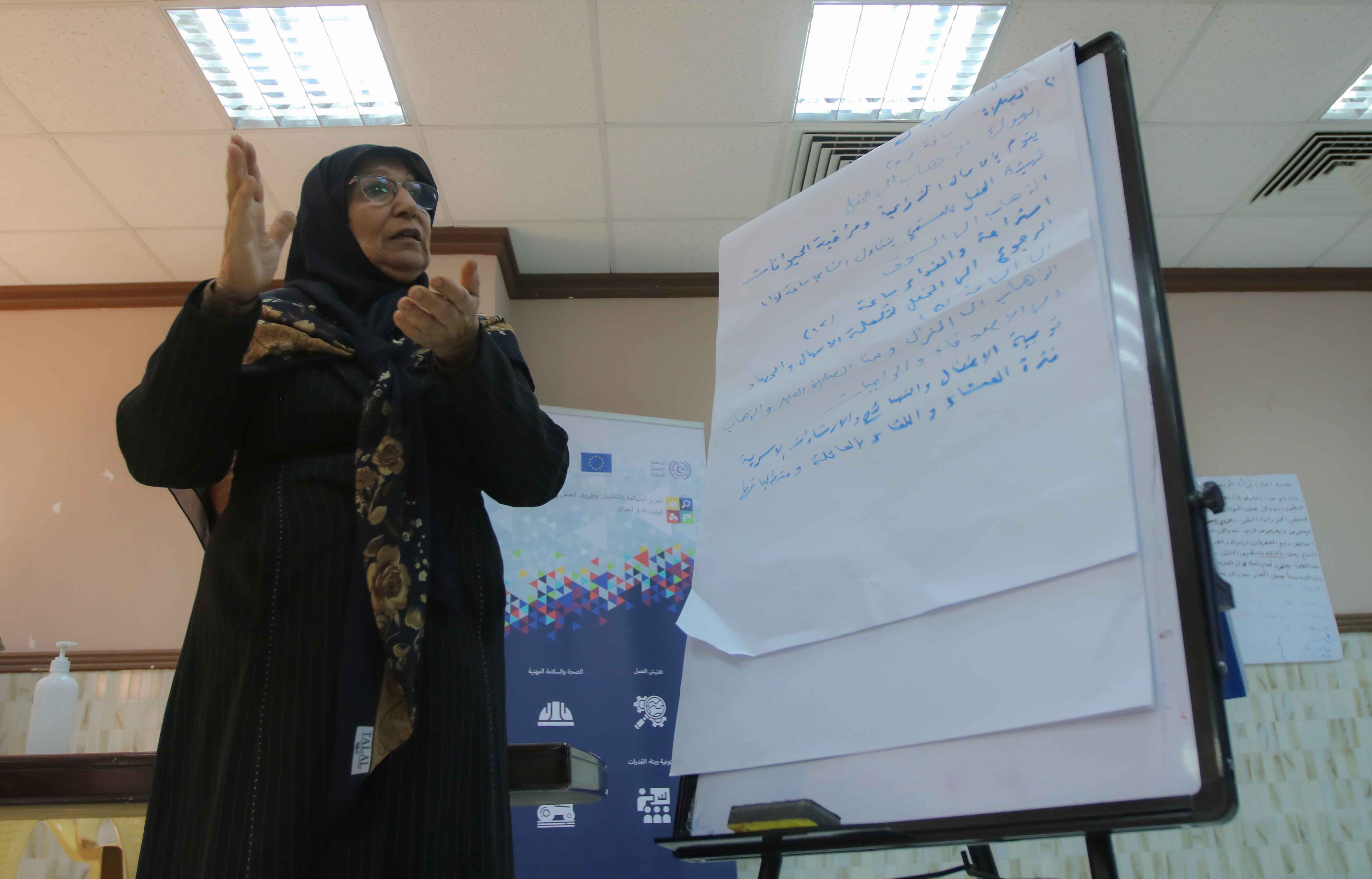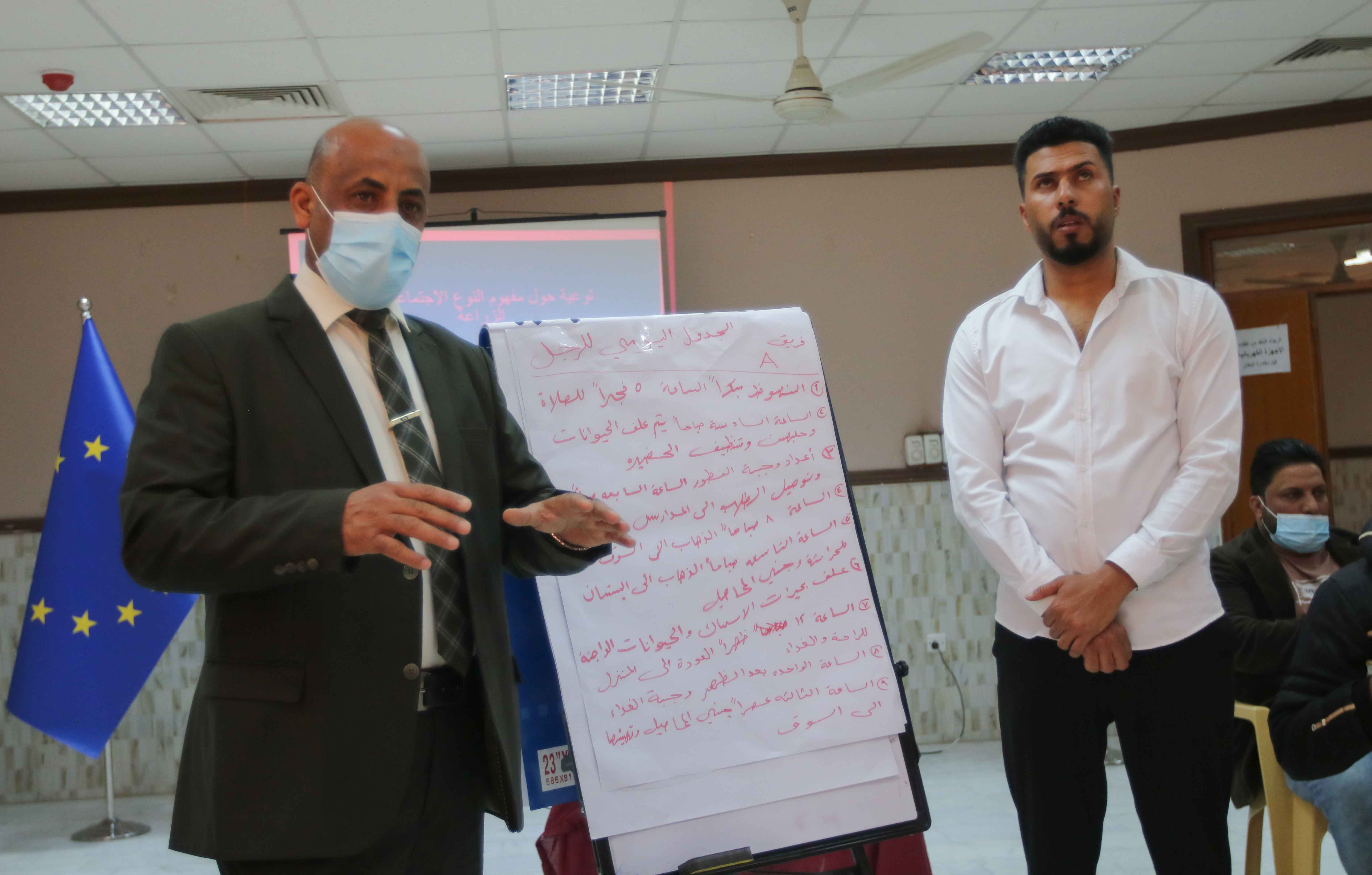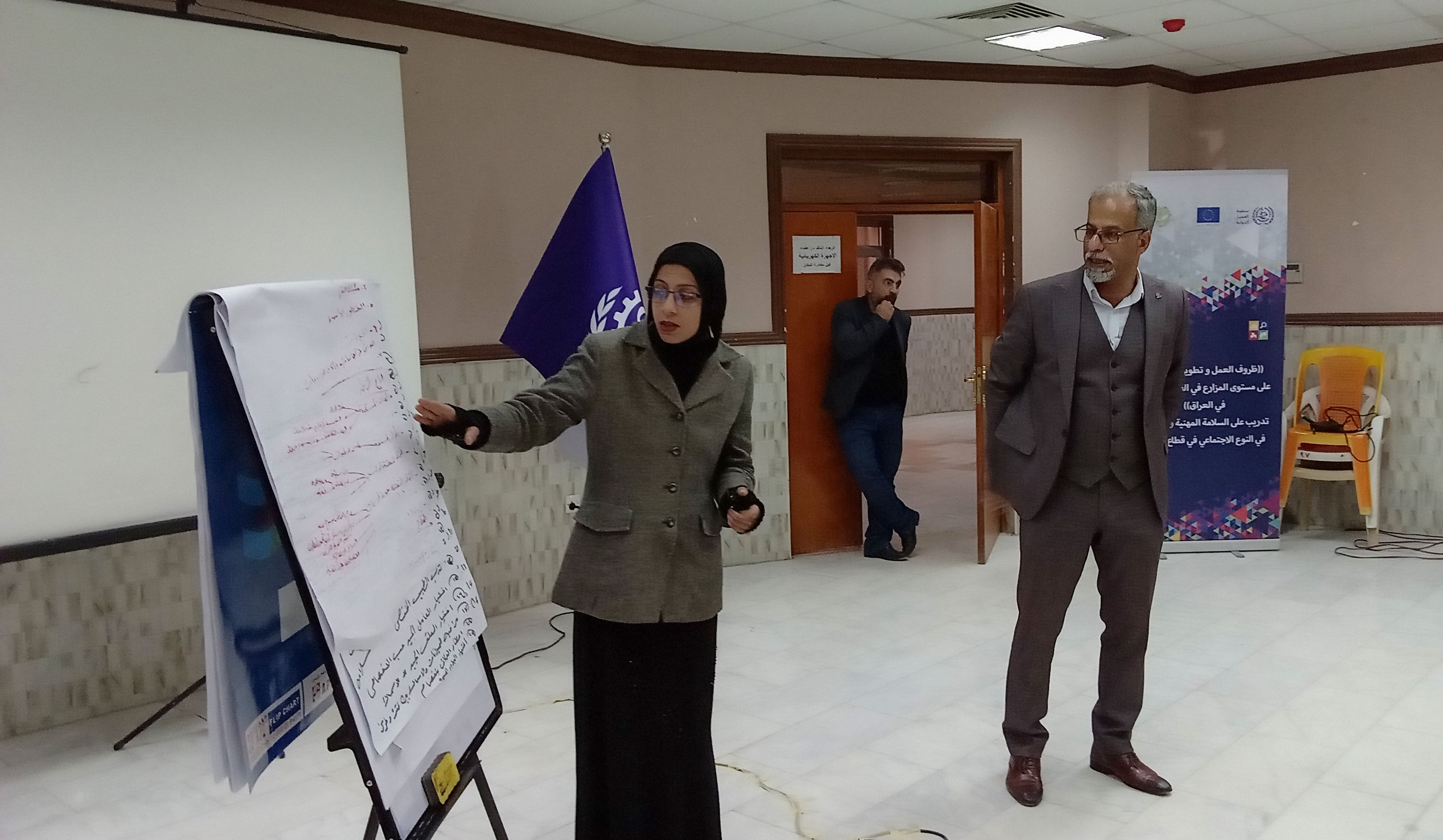 شاندێكی باڵای یەكێتی ئەوروپا و رێكخراوی كاری نێودەوڵەتی لەبەشێكی چالاكییەكانی وۆركشۆپەكەدا بەشداربون.