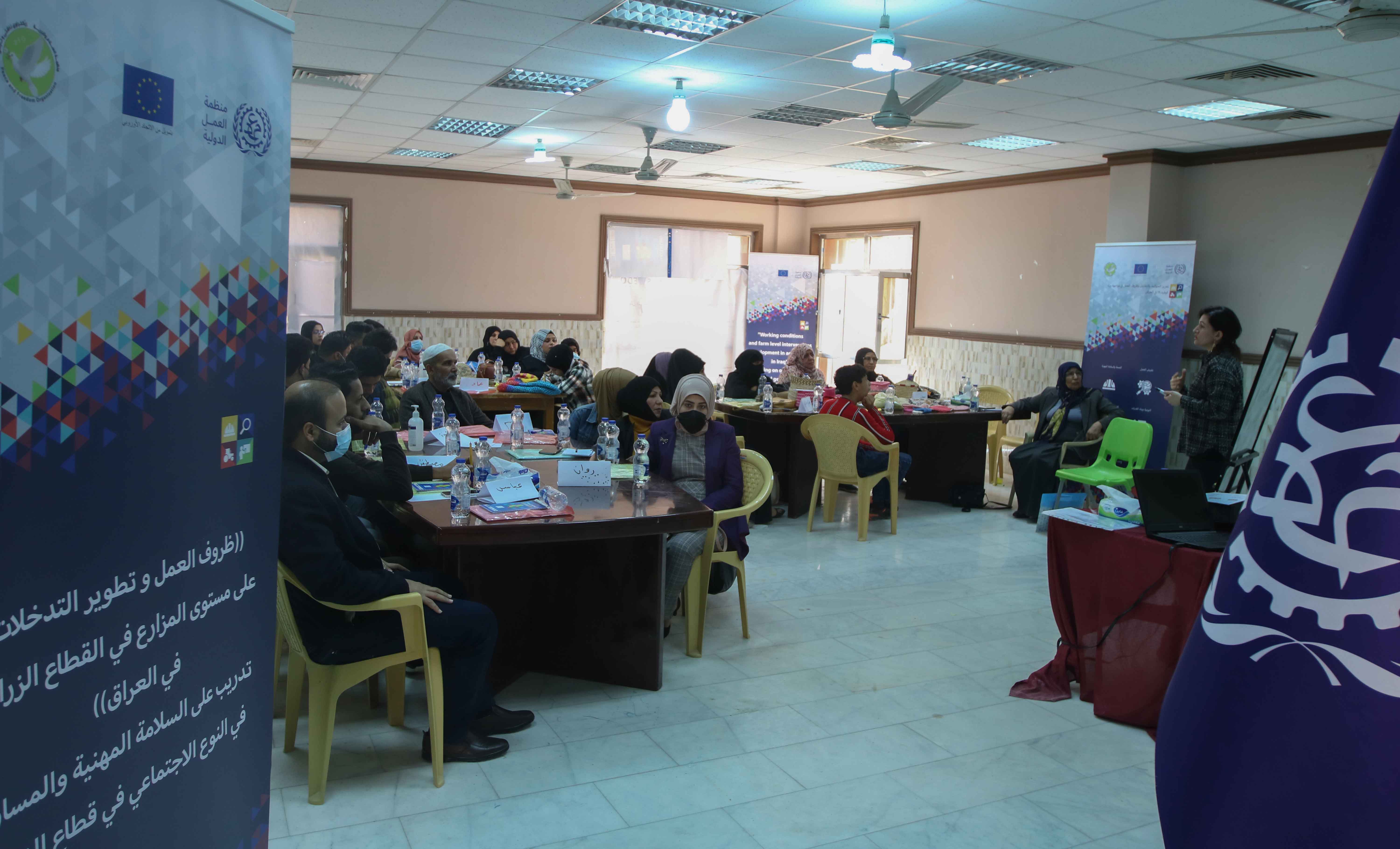 رۆژی چوارشەمە شەممە 9ـی 2ـی 2022 لەقەزای ئەبی خەسیب لەپارێزگاری بەسرە چالاكییەكانی وۆركشۆپی تایبەت بە تەندروسی وسەلامەتی پیشەیی و یەكسانی جێندەری لەكەرتی كاری كشتوكاڵی لەچوارچێوەی پڕۆژەی (چاككردنی دۆخی كار و پێشخستنی بەشدارییەكان لەكەرتی كەرتی كشتوكاڵی لەعێراق) بەبەشداری 31 كەس لەكرێكارانی ژن و پیاوی كەرتی كشتوكاڵی خاوەن كار و جوتیار ونوێنەری سەندیكا وكۆمەڵە كشتوكاڵییەكان کۆتایی هات.