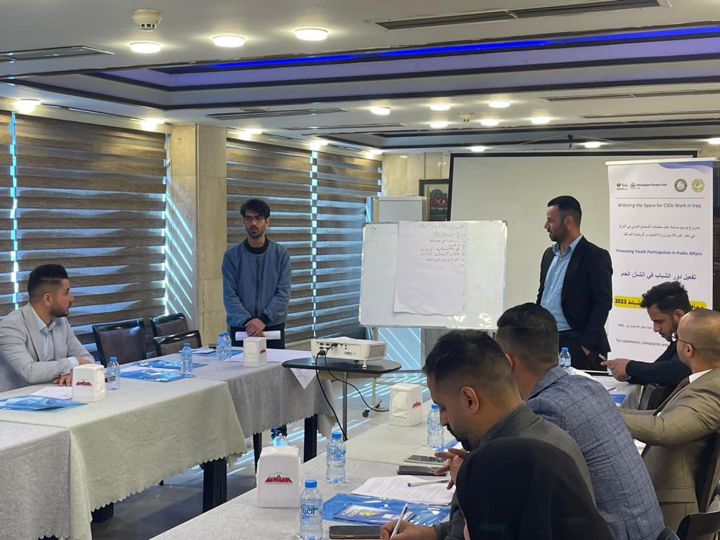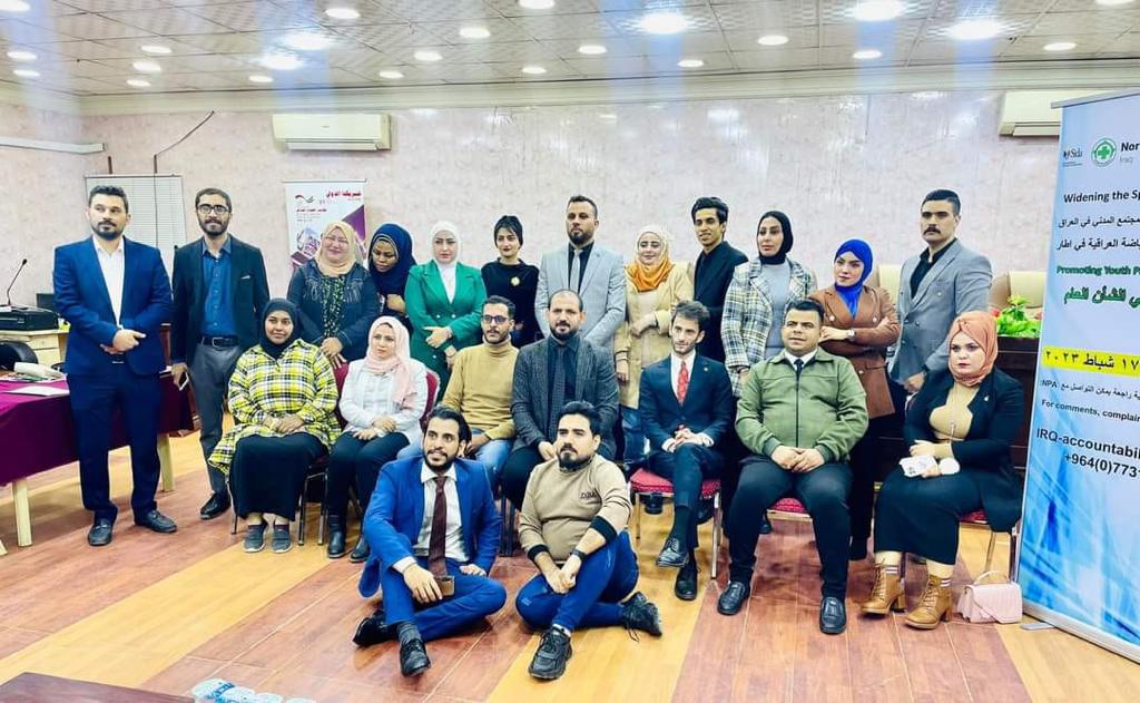 له چوارچێوهی كاروچالاكیهكانی، ڕێكخراوی ئاشتی و ئازادی دوو ۆركشۆپی تایبهتی به بهشداری گهنجان و لاوان له كاروباری گشتیدا له پارێزگاكانی بهغداد و بهسره ڕێكخست.