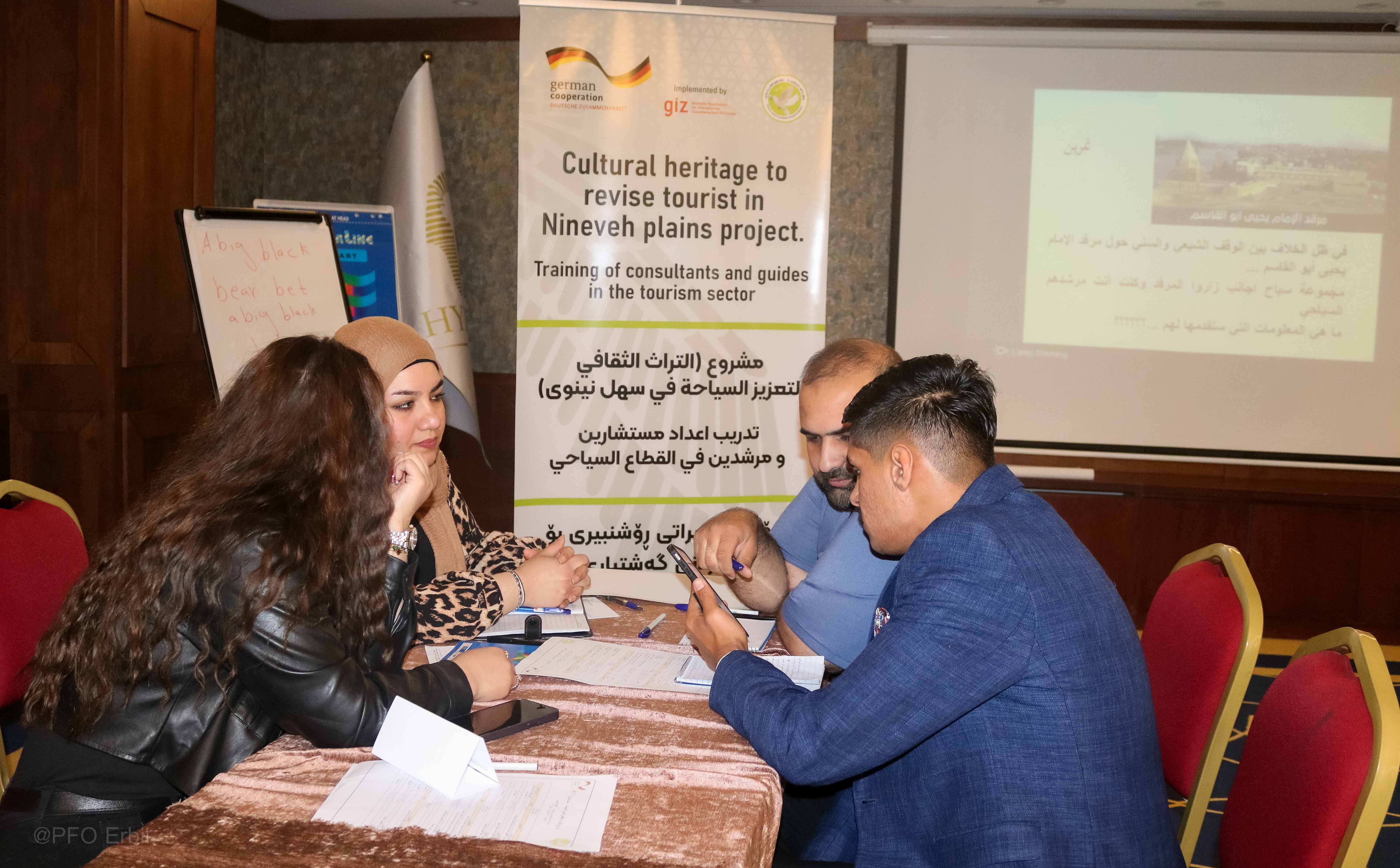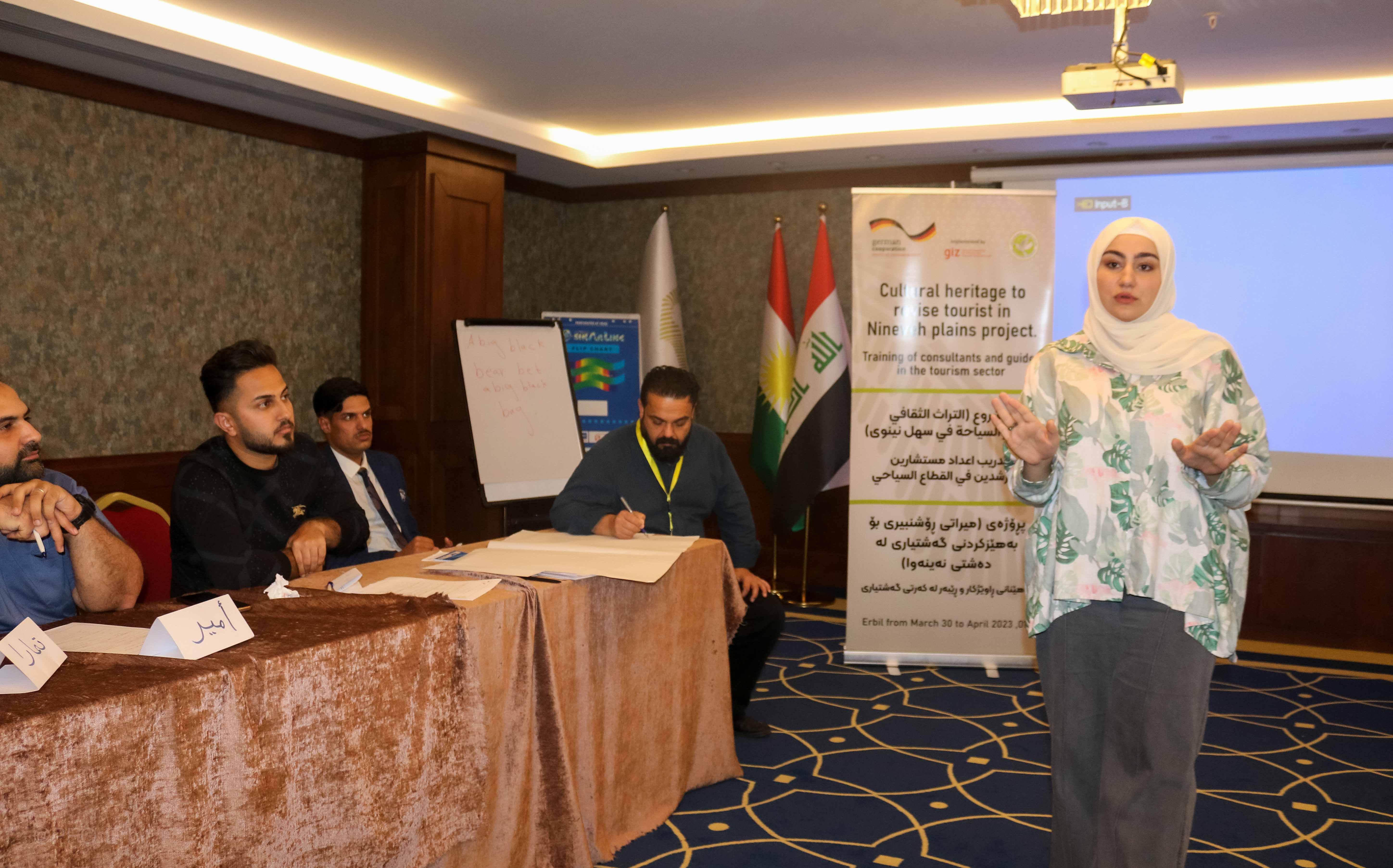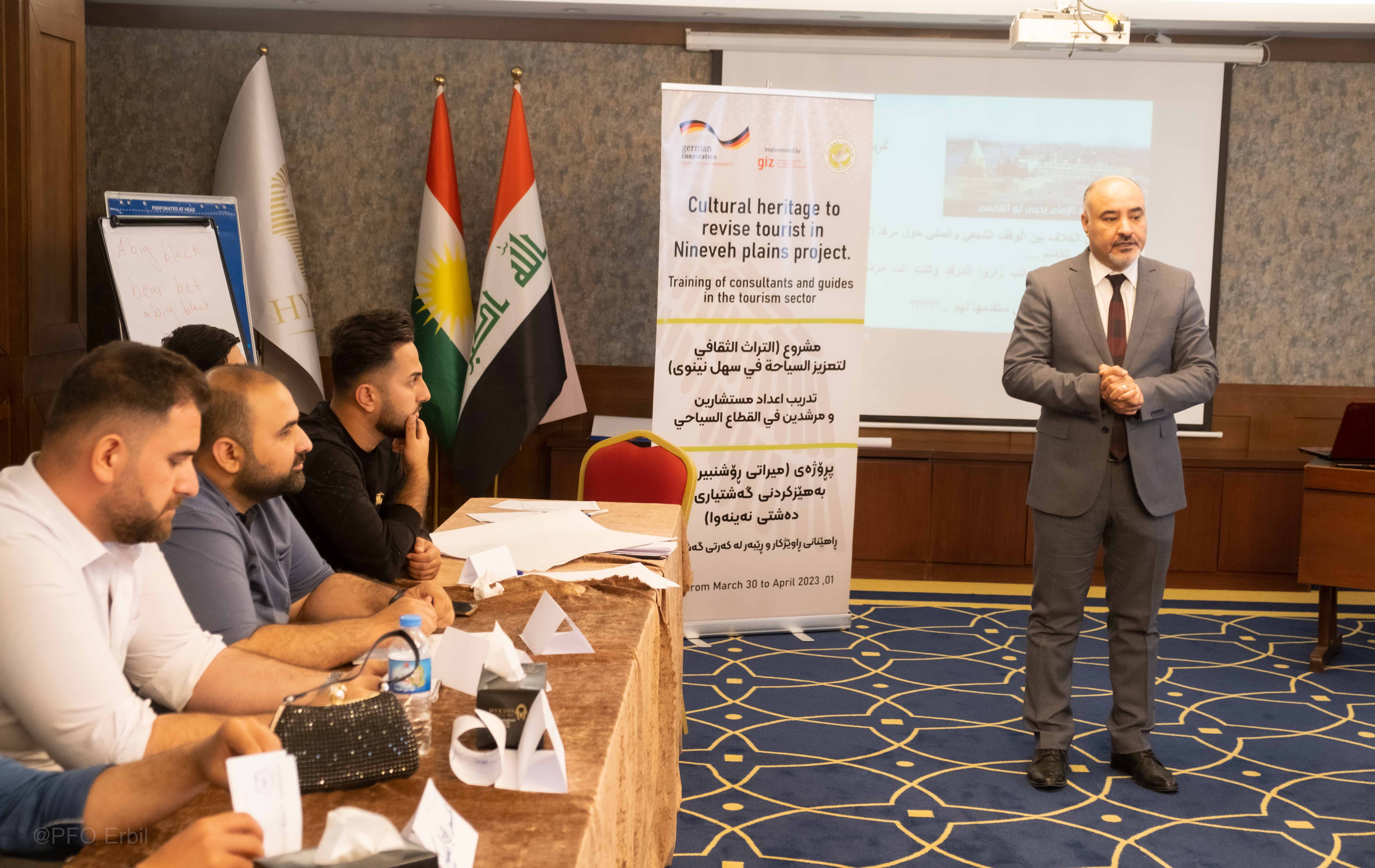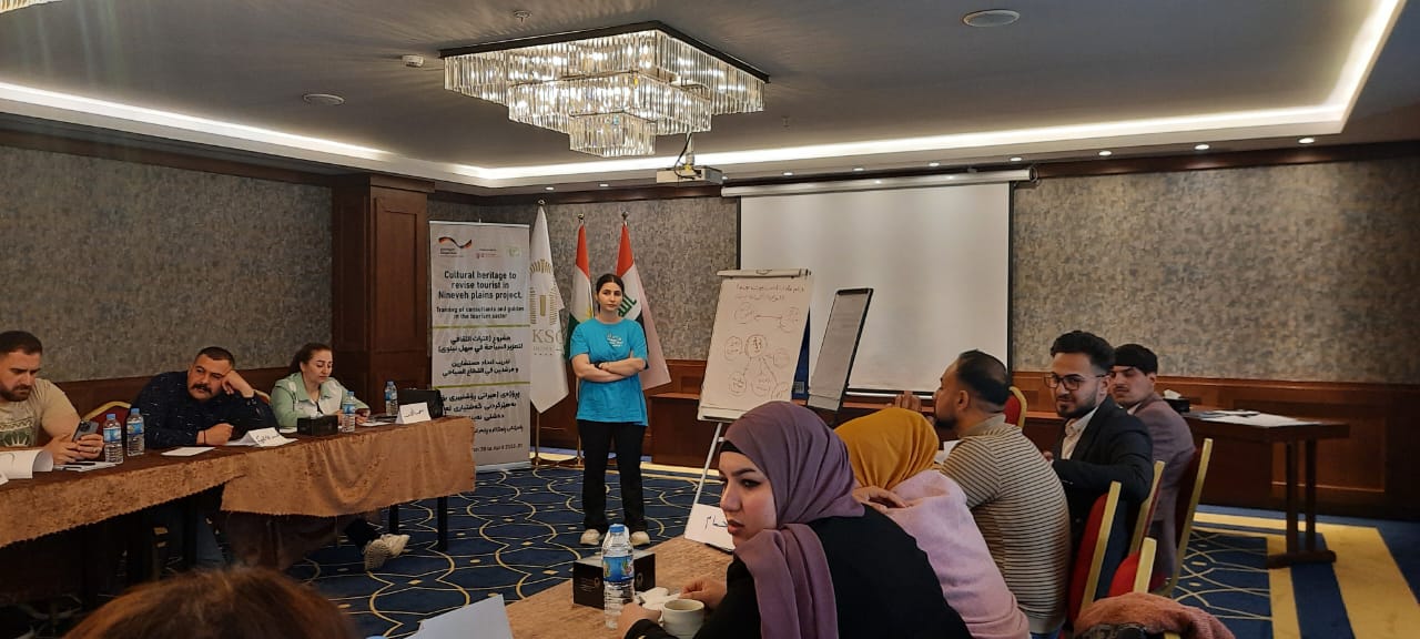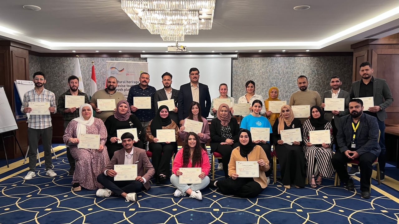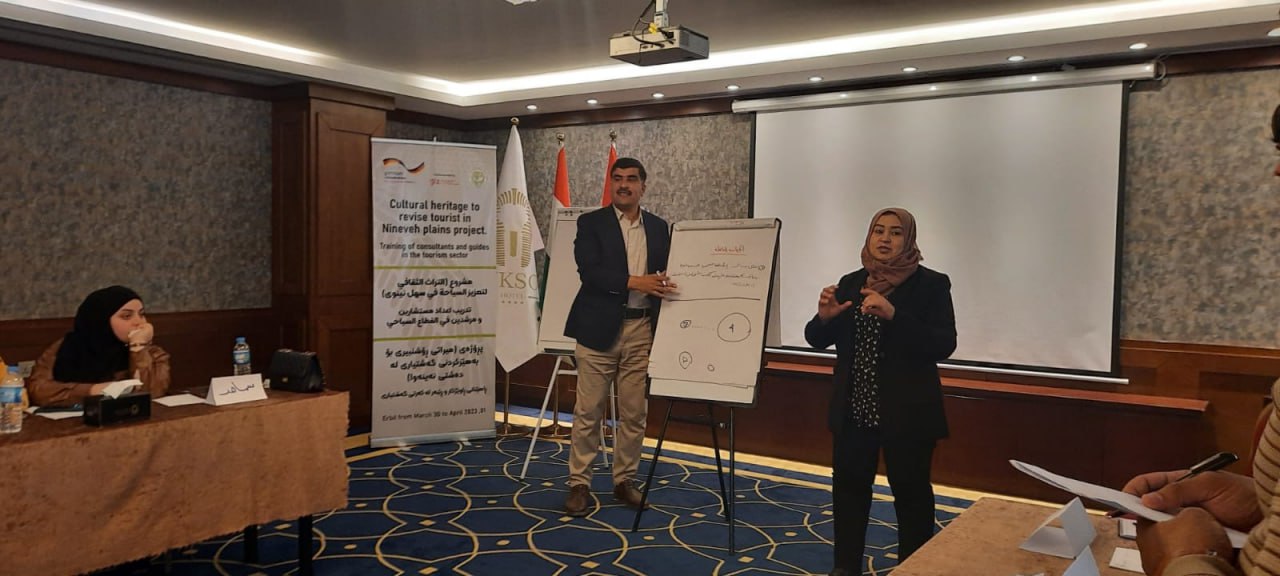 لە چوارچێوەی چالاکیەکانی پرۆژەی (میراتی ڕۆشنبیری بۆ بەهێزکردنی گەشتیاری لە دەشتی نەینەوا ) و بە پاڵپشتی ڕێکخراوی (GIZ) ئەڵمانی ڕاهێنانێکی ٣ ڕۆژی بە ناونیشانی (ڕاهێنانی ڕاوێژکار و ڕێبەر لە کەرتی گەشتیاری) بۆ (٢٠) کەس لە کچ و کوڕی دانیشتوانی دەشتی نەینەوا بەسەرکەوتویی تەواو بوو لە شاری هەولێر، لە ڕۆژی ٣٠ ئادار تا ٠١ نیسان، ٢٠٢٣. ئامانجی سەرەکی ئەم راهێنانە ئامادەکردنی پۆلێك گەنجی ئەکتیڤ بوو کە بتوانن ڕۆڵی ڕاوێژکاریی و ڕێنیشاندەری گەشت و گوزاری ببینن لە دەشتی نەینەوا بۆ میوانانی ناوخۆ و بیانی لە وەرزەکانی گەشت و گوزارو هەروەها لە ڕۆژانی ئاساییدا.