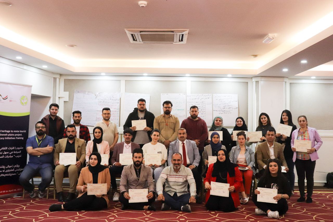 لە چوارچێوەی چالاکیەکانی پرۆژەی (میراتی ڕۆشنبیری بۆ بەهێزکردنی گەشتیاری لە دەشتی نەینەوا ) و بە پاڵپشتی ڕێکخراوی (GIZ) ئەڵمانی ڕاهێنانێکی ٣ ڕۆژی بە ناونیشانی (پاڵپشتیکردن بۆ ئاستی بەرز) بۆ (٢٠) کەس لە کچ و کوڕی دانیشتوانی دەشتی نەینەوا بەسەرکەوتویی تەواو بوو لە شاری هەولێر، لە ڕۆژی ٠٦ نیسان تا ٠٨ نیسان، ٢٠٢٣. ئامانجی سەرەکی ئەم راهێنانە ئامادەکردنی پۆلێك گەنجی ئەکتیڤ بوو کە بتوانن ببنە ئەندام لە وەدفەکانی ئەدڤۆکەسی بۆ وتوێژ کردن و سەردانی کردنی بەرپرس و دەزگا ئیداری و حکومیەکان لەسەر ئامانجە گشتیەکانی پڕۆژە کە بریتیە لە بەهێزکردنی کەلەپورو گەشت و گوزار و بەهێزکردنی پاراستنی ژینگە بۆ پتەو کردنی پێکەوە ژیان و ئاشتی لە دەشتی نەینەوا.