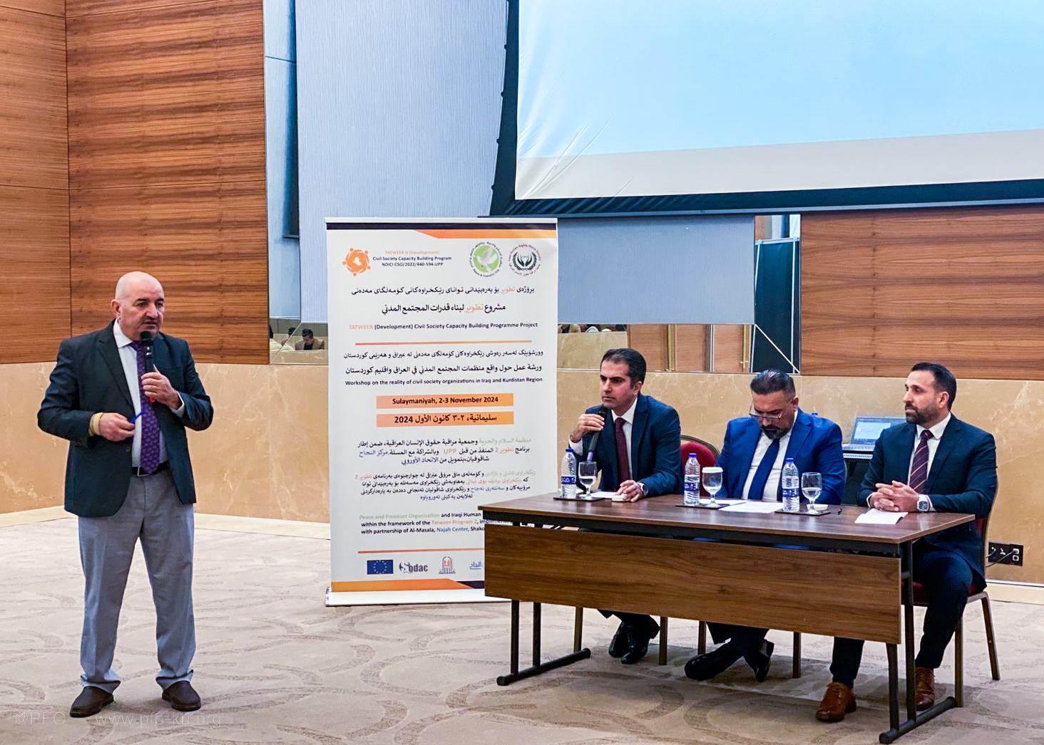 ڕێکخراوی ئاشتی و ئازادی و کۆمەڵەی چاودێری مافی مرۆڤی عێراق وۆرک شۆپێکی فراوانیان لە پارێزگای سلێمانی ئەنجامدا، بۆ تاوتوێکردنی رەوشی ڕێکخراوەکانی کۆمەڵگەی مەدەنی لە عێراق و هەرێمی کوردستان. ئەم چالاكییە یەكێك بوو لە چالاكییەكانی چوارچێوەی بەرنامەی "گەشەپێدان ٢"دا کە لەلایەن ڕێکخراوی "پردێك بۆی" (UPP ئیتاڵییەوە جێبەجێ دەكرێت، بە هاوبەشی لەگەڵ ڕێکخراوی ڕێکخراوی مەسەللە بۆ پەرەپێدانی توانا مرۆییەکان و بە پارەداركردنی لە لایەن یەکێتی ئەوروپاوە.