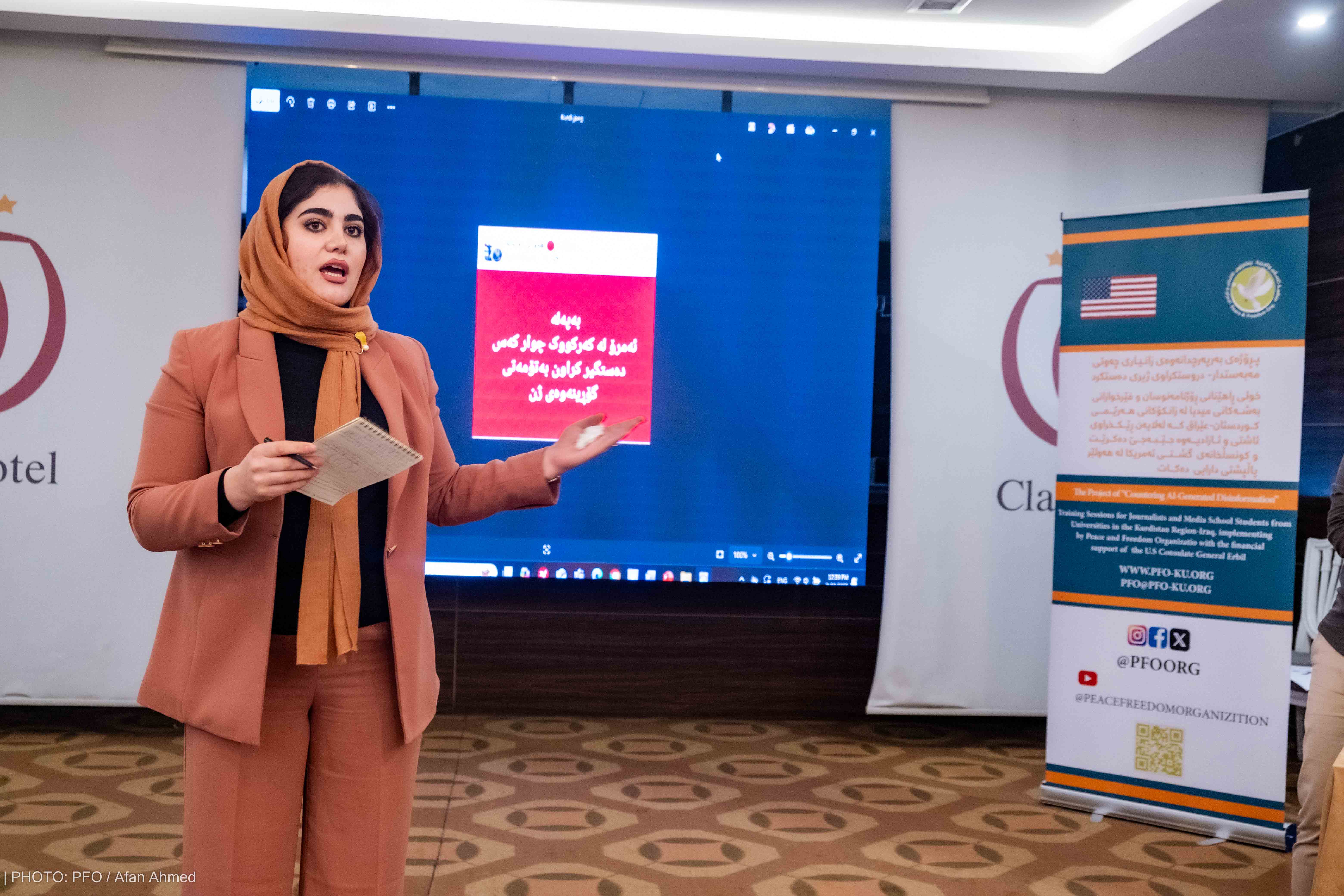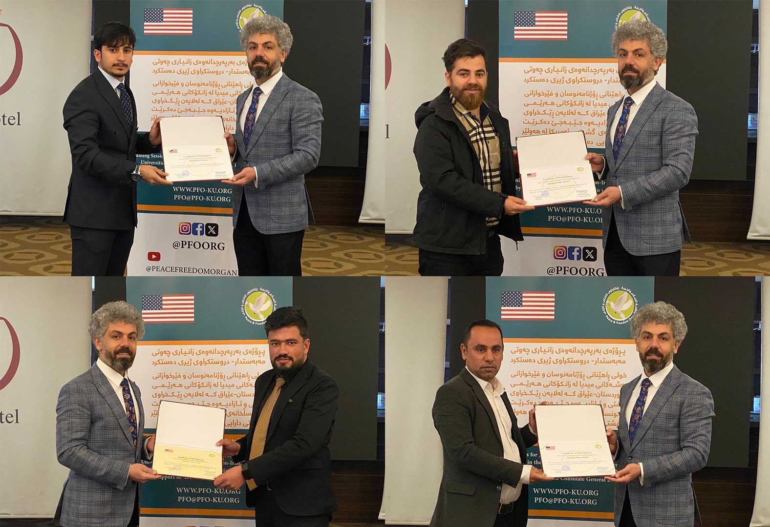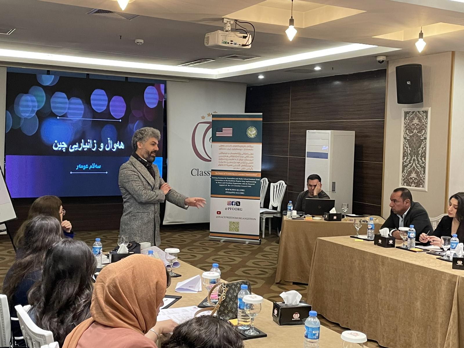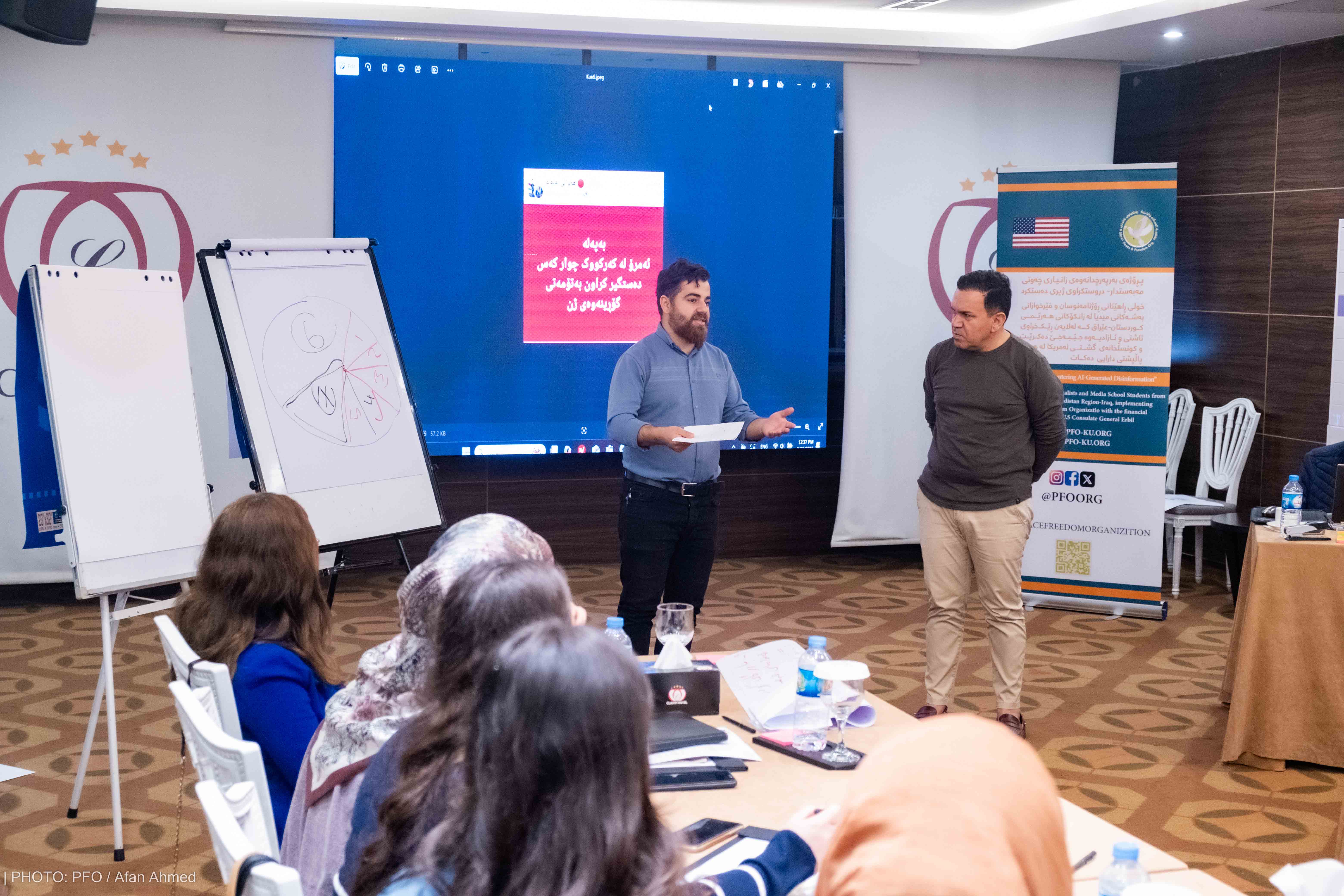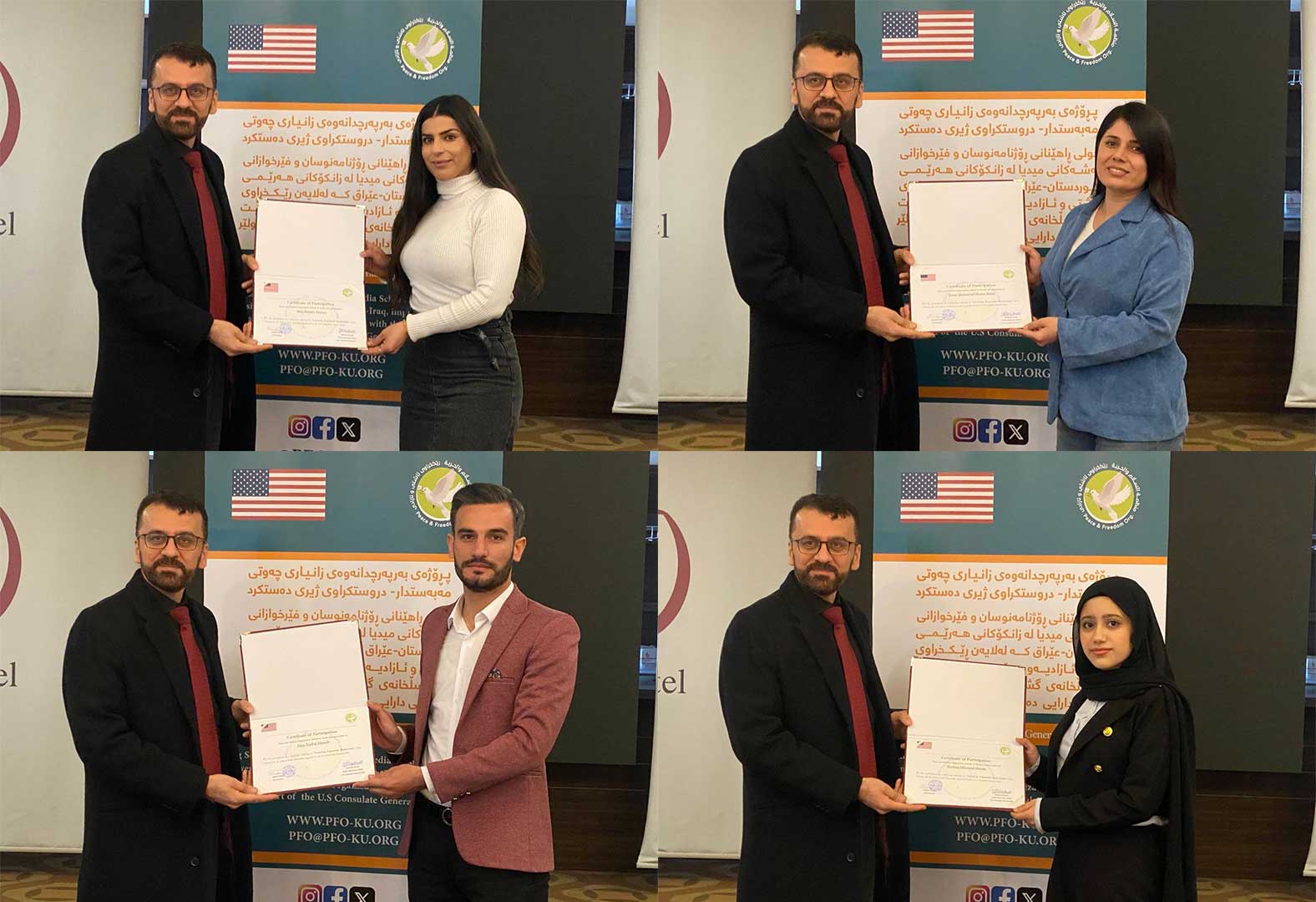 لە چوارچێوەی هەوڵە بەردەوامەکانی بۆ تواناسازی ڕۆژنامەنوسان و فێرخوازانی زانکۆ و پەیمانگاکان، ڕێکخراوی ئاشتی و ئازادی بە پالپشتی دارایی کونسلخانەی گشتی ئەمریکا-هەولێر سێ یەم خولی ڕاهێنانی تایبەت بە زانیاری چەوتی مەبەستدار-دروستکراوی ژیری دەستکردی لە شاری هەولێر ئەنجامدا. خولەکە لە ڕۆژانی ٢٠بۆ٢٢ی شوباتی ٢٠٢٥ بەڕێوەچوو، ٢٥ ڕۆژنامەنوس و فێرخوازی زانکۆی بەشەکانی ڕاگەیاندن لە ڕەگەزی نێر و مێ بەشداریان تێداکرد کە لە شارو شارۆچکە جیاوازەکانی هەرێمی کوردستان و پارێزگای کەرکوکەوە هاتبوون.